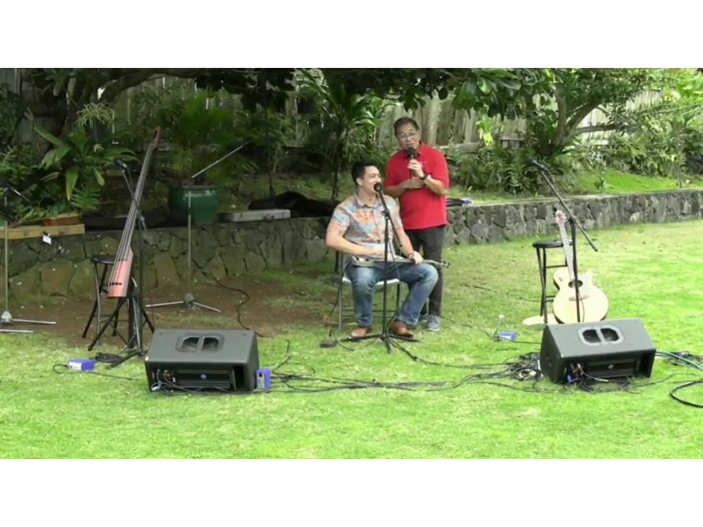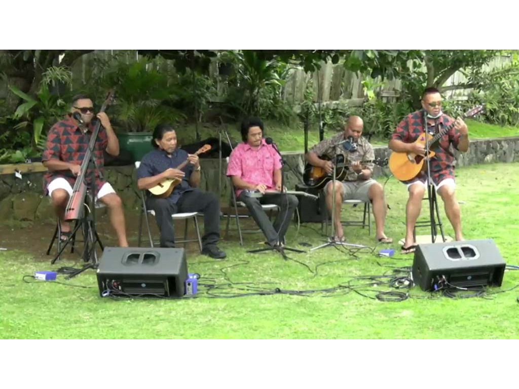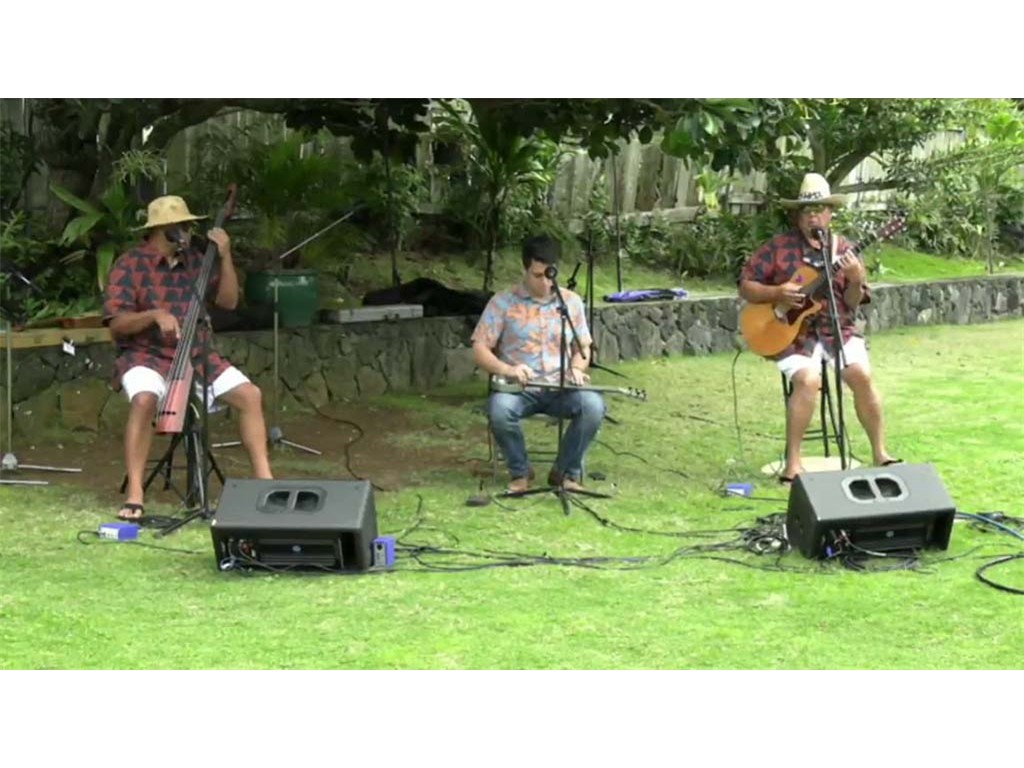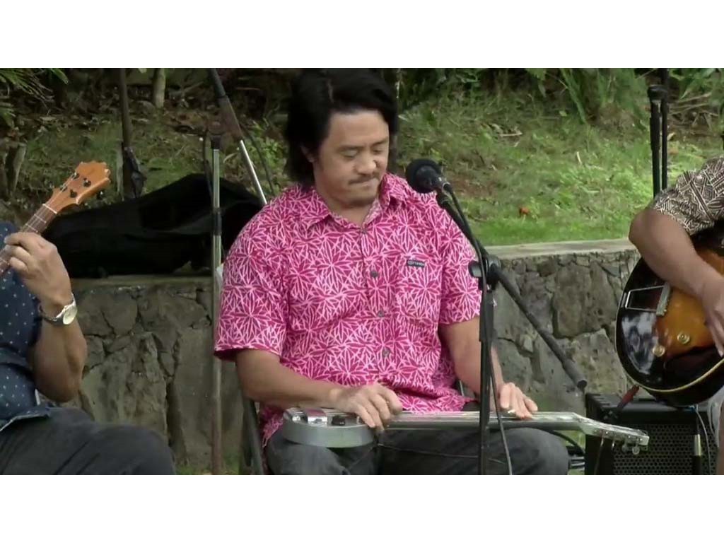 Alan Akaka introduces featured steel guitarist Jeff Au Hoy with special guests Bobby Ingano and Ocean Kaowili and Adam and Kaipo Asing.