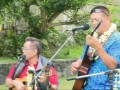 More instrument switching. From left: Kapono Lopes on bass, Bobby and Jeff on steel guitar, Greg on ʻukulele, Mālie, Alan, Kaipo, and Adam Asing on ʻukulele.
