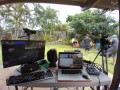 The livestream broadcast setup showing the camera and outdoor stage. Photo by Scotty Wong.