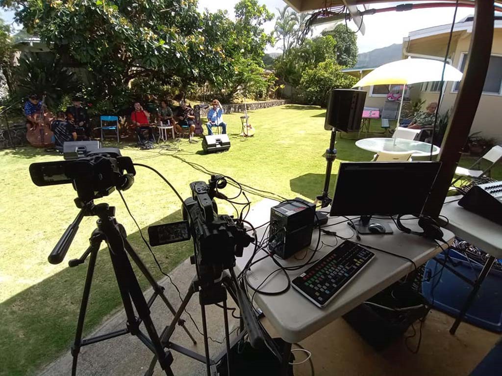 The Livestream Kanikapila on May 15, 2021, featured two hours of live performances by an all-star kanikapila band that viewers could play along with or just enjoy the music. The all-star band featured Gary Aiko, Bobby Ingano, Alan Akaka, fiddler David Finch, Kaipo Asing, Greg Sardinha, Adam Asing, and slack key guitarist George Kuo. The live broadcast was supplemented by NextGen videos during a brief rain interruption.