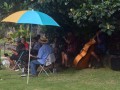 The umbrella proved to be no match for the showers and a program rain break was called. Photo by Sandy Sardinha.