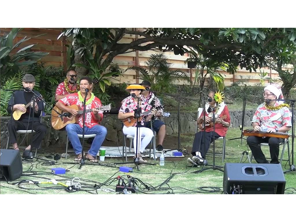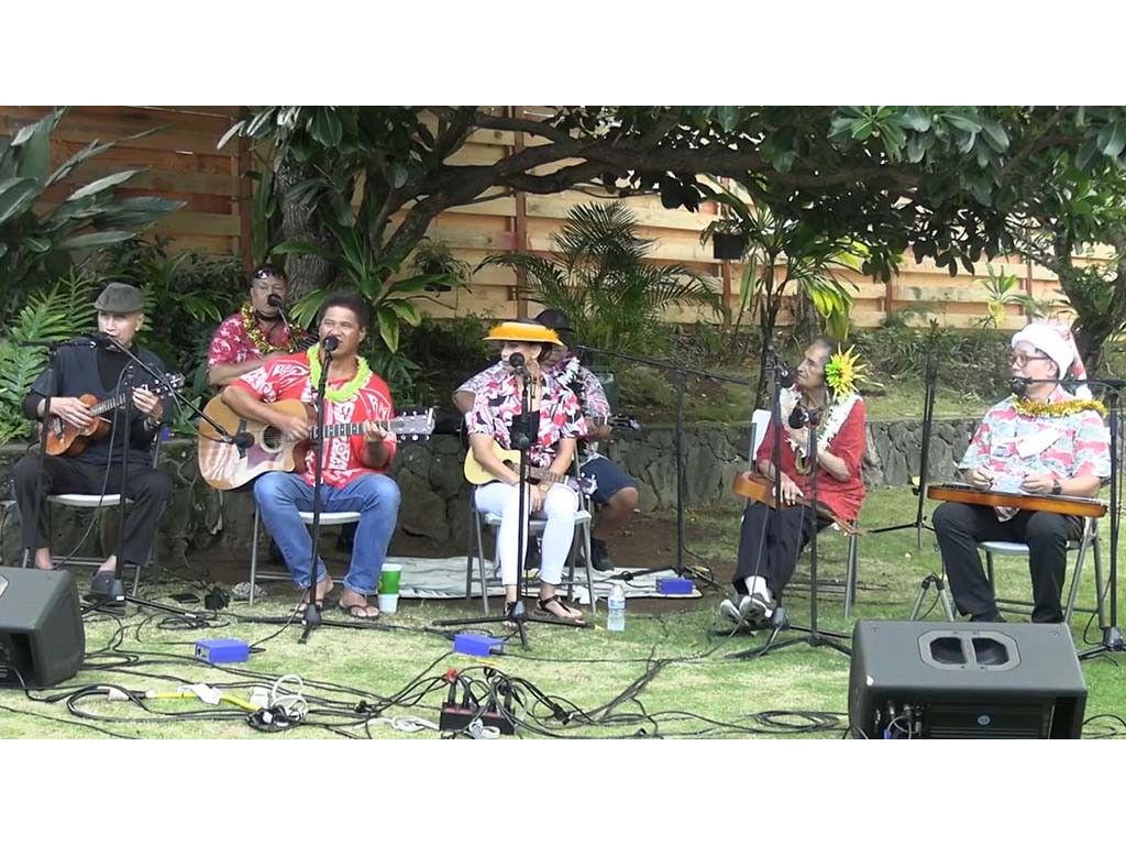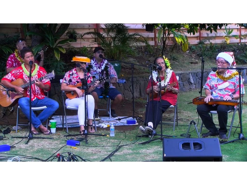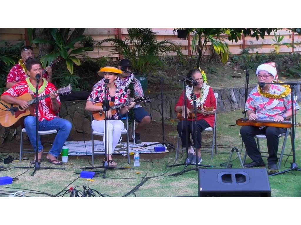 The Livestream Kanikapila on December 18, 2021 featured live performances by the Keawe ‘Ohana. Labeled as "A Keawe ‘Ohana Christmas," artists included Gary Aiko, Pomaika‘i Keawe, Momi Bee Kahawaiola‘a, Alan Akaka, and Eric Keawe. Also appearing were Kaipo Asing and Jeremy Kama Hopkins, grandson of Aunty Momi. Prerecorded Christmas videos featuring NextGen steel guitarists were also presented.