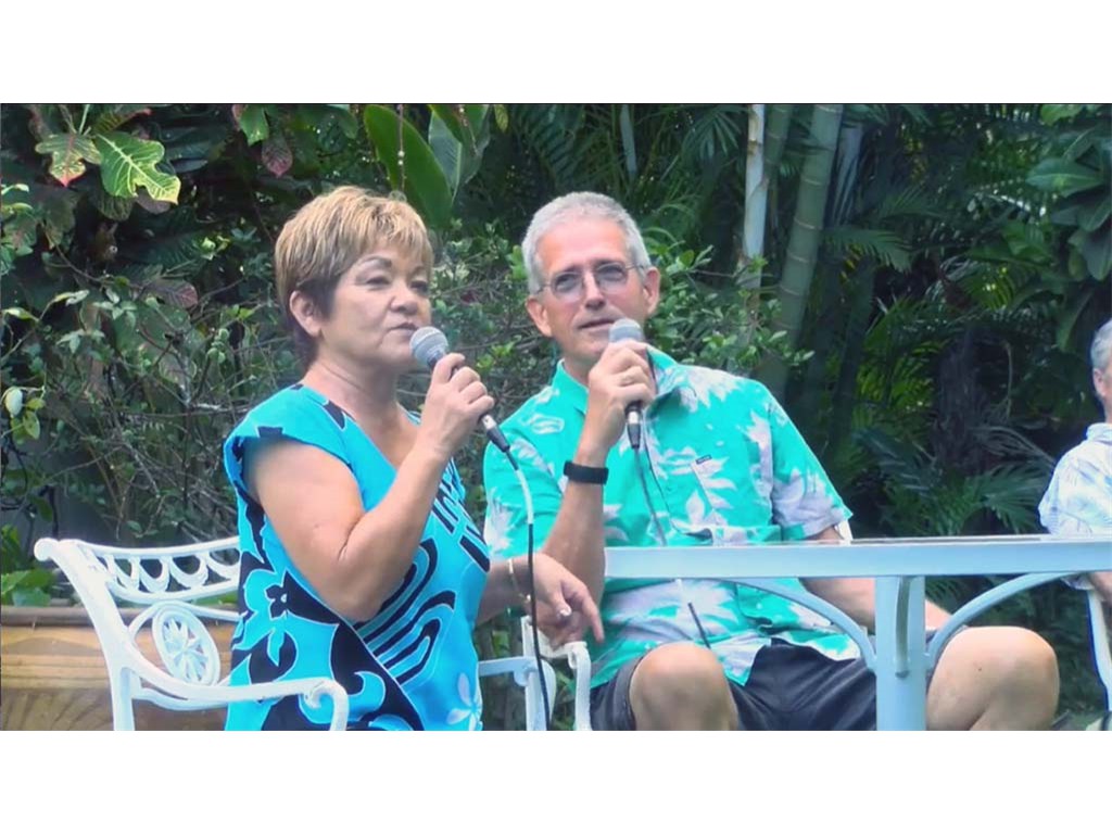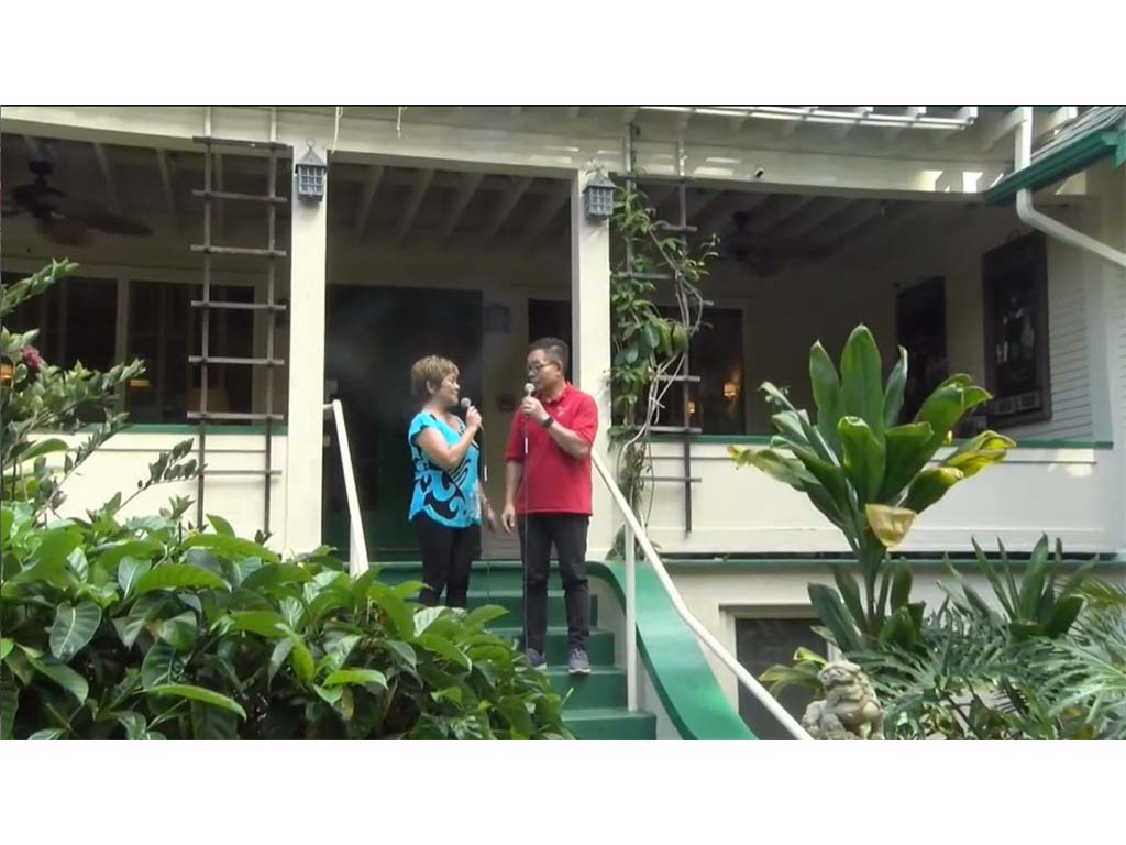 Kathy Collins interviewing Old Wailuku Inn owner and manager Tom Fairbanks.