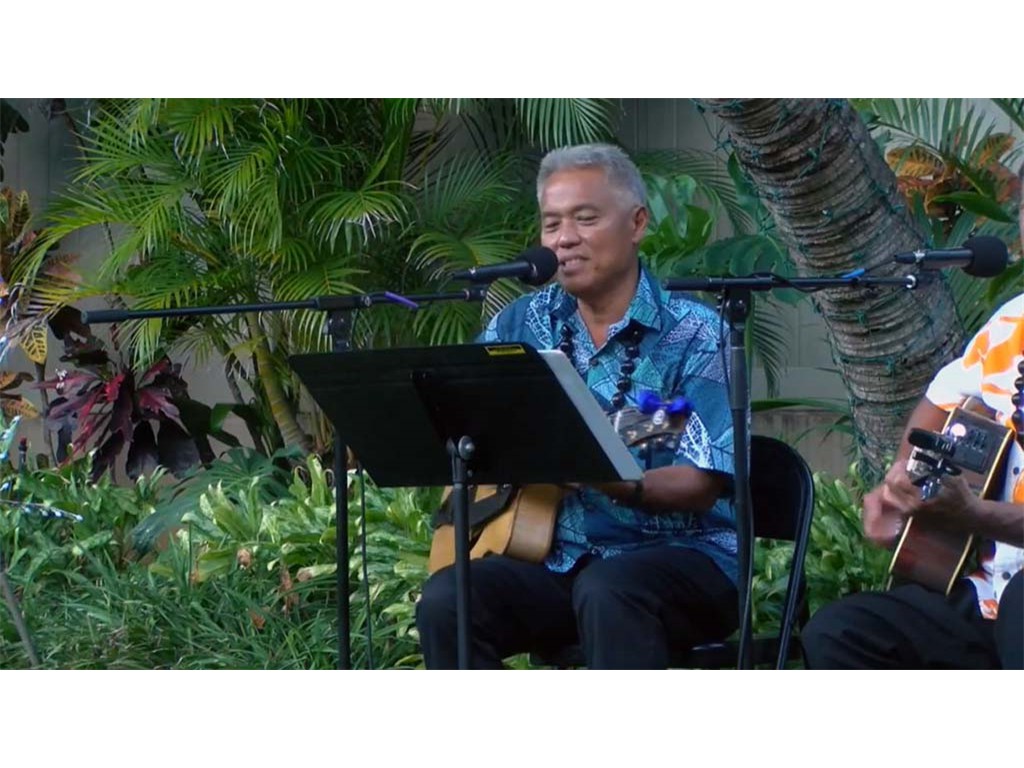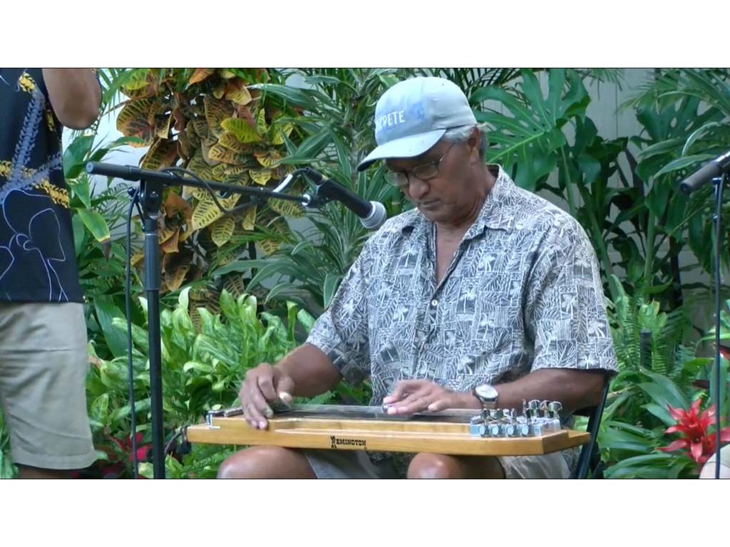 Kaʻiwa Ho, Maui steel guitar student of Ross Kaʻaʻa.Due to a previous football commitment, Kaʻiwa appeared on prerecorded video.