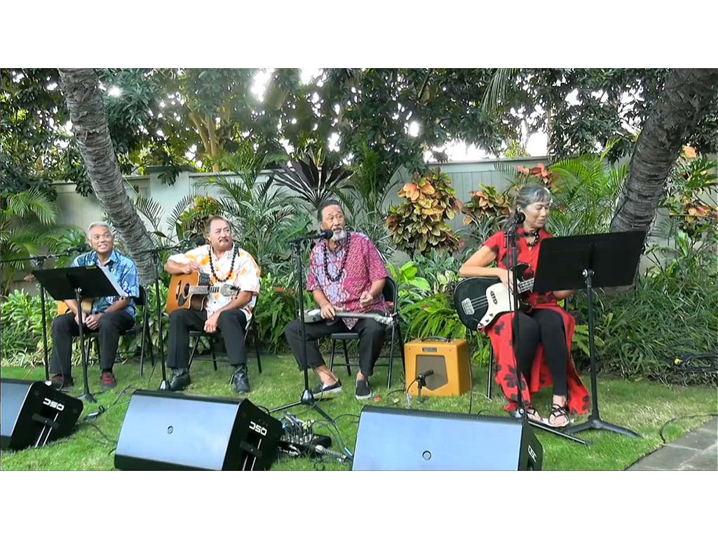 Maui steel guitarist Geri Valdriz with Don Mitsuyuki, Kawaika Kamai, and Verdine Kong.