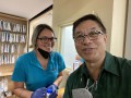 Alan with the friendly druggist at Molokai Drugs.