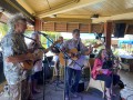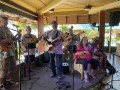 Kini Christie with Victor Patron on the steel guitar. In the rear: Kevin, Sterling, Fred, Uncle Benny, and Jeff.