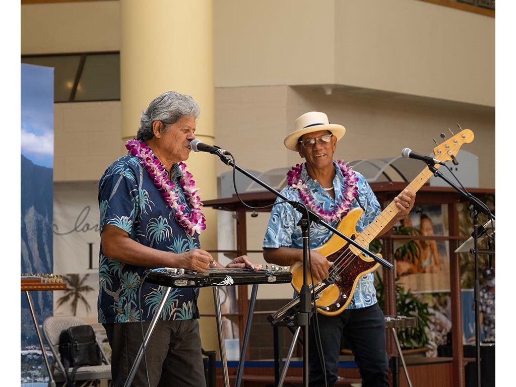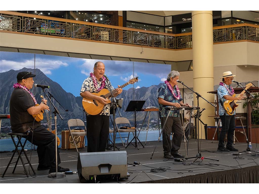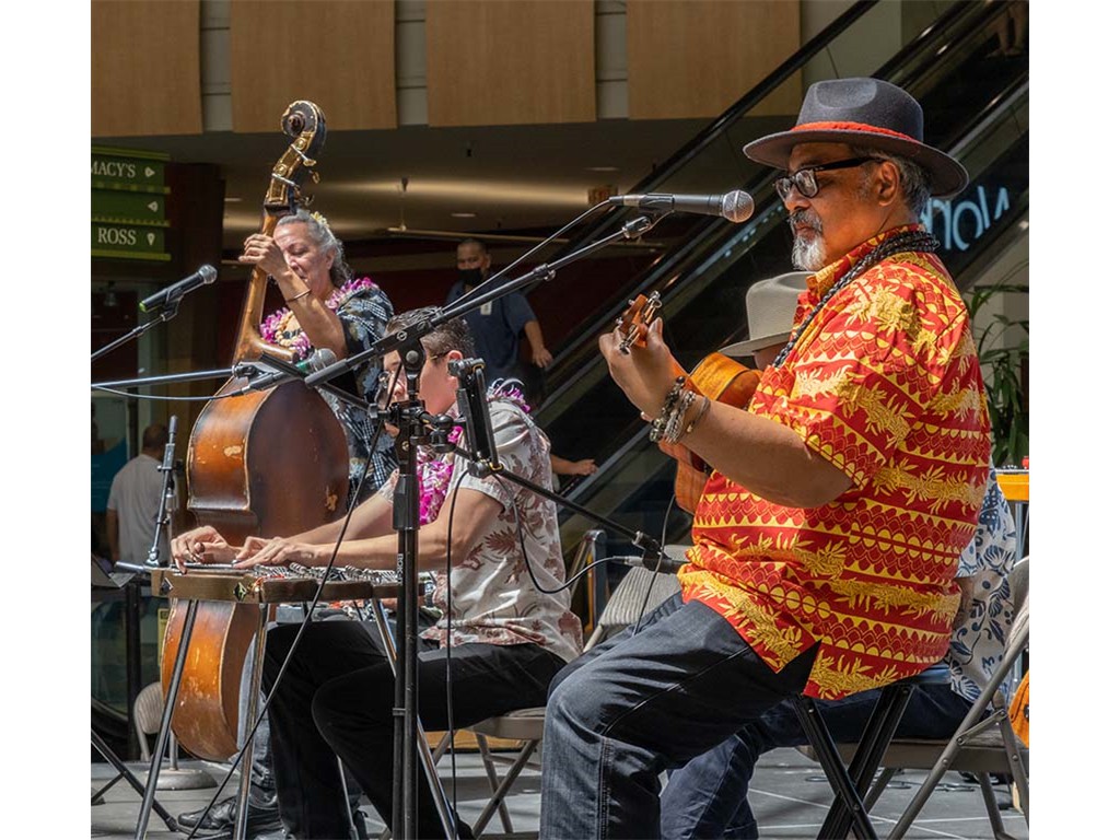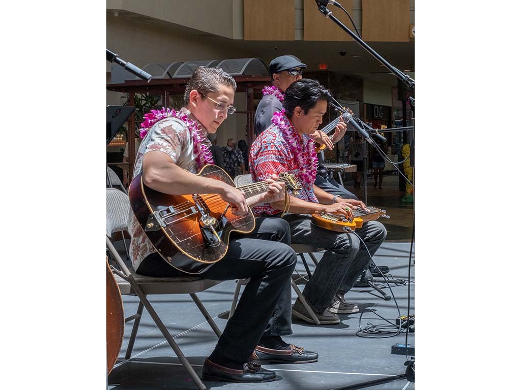 The Hawaiian Steel Guitar Festival at Windward Mall was held on Saturday, June 11, 2022, at the Windward Mall in Kane‘ohe. The festival featured steel guitarists Greg Sardinha and Po‘okela (Zachary Castro and Darrell Aquino), Kapono Lopes, Jeff Au Hoy, Steve Cheney, Joseph Zayac, Bobby Ingano, and Alan Akaka who also included NextGen steel guitarists Makamae Lyu-Napoleon, Isabella Bertelmann, Tai Misailidis, Pono Fernandez, and Joey Misailidis with Bobby Ingano assisting. Backup for some steel guitarists was provided by Helene Woodward on upright bass, Joseph Zayac on guitar, and Kaipo Asing on ‘ukulele.