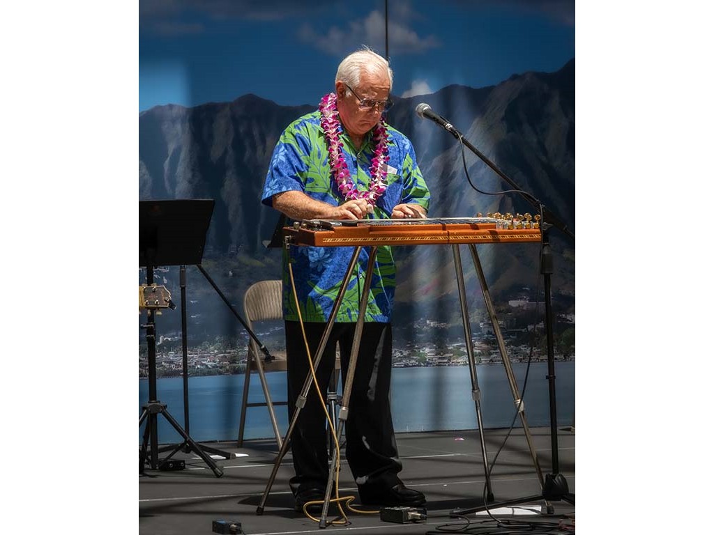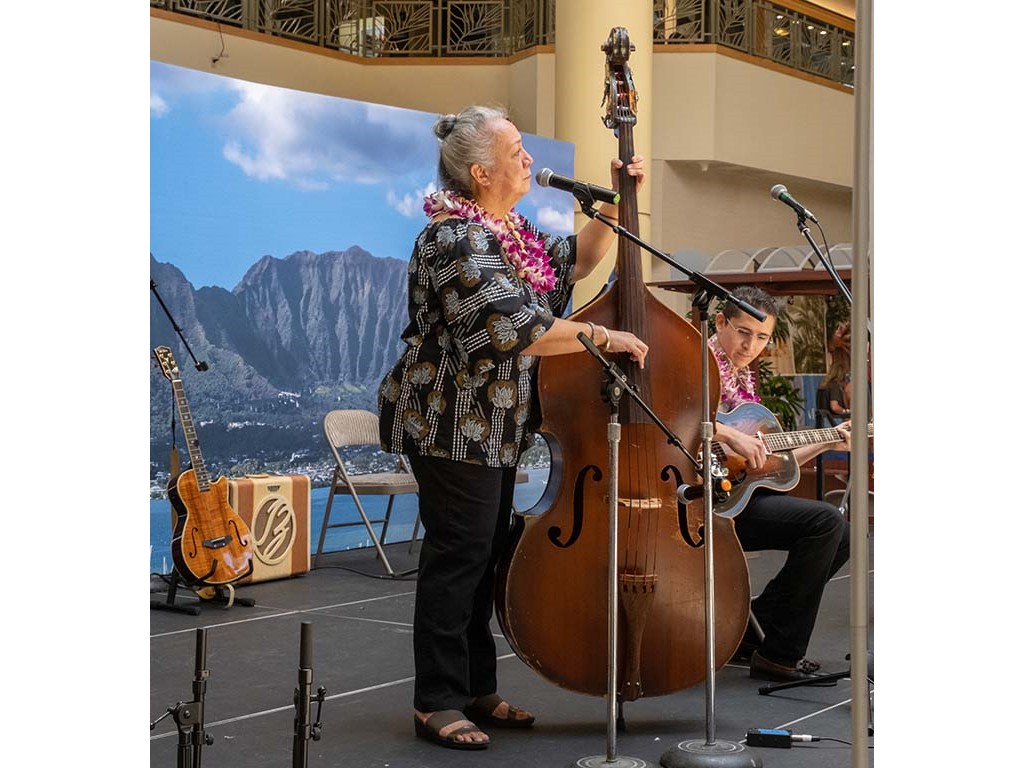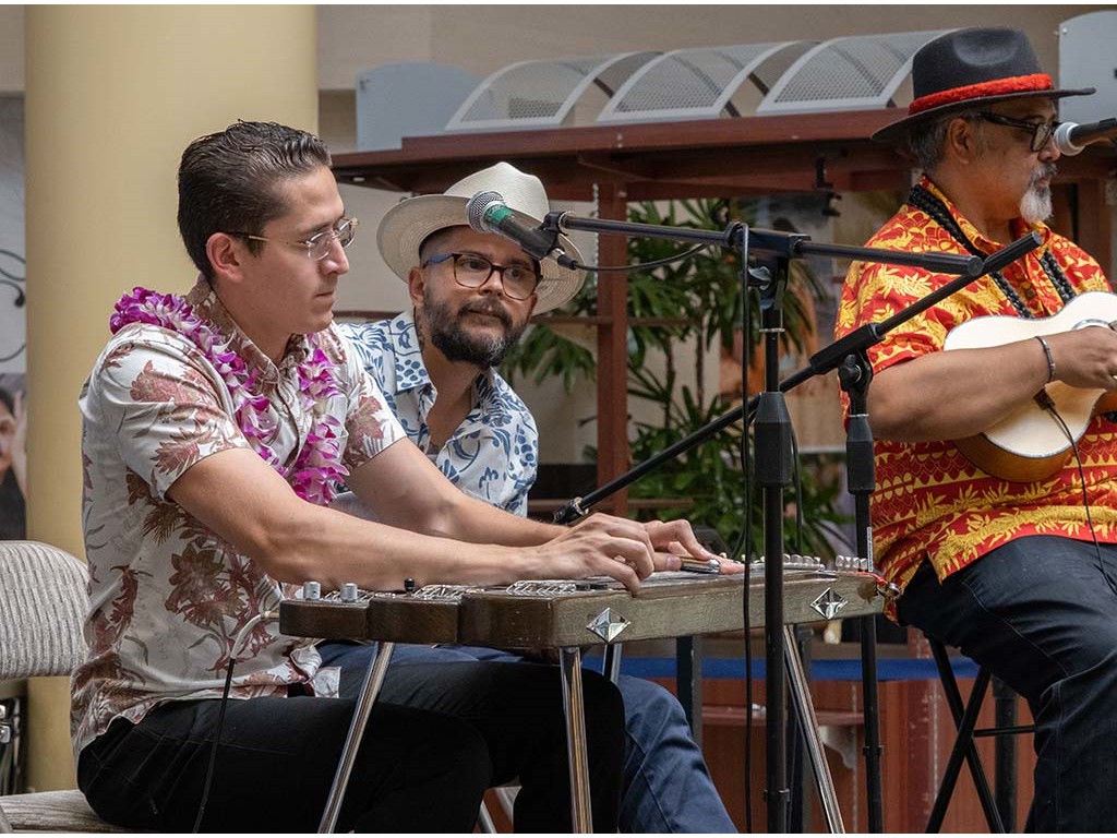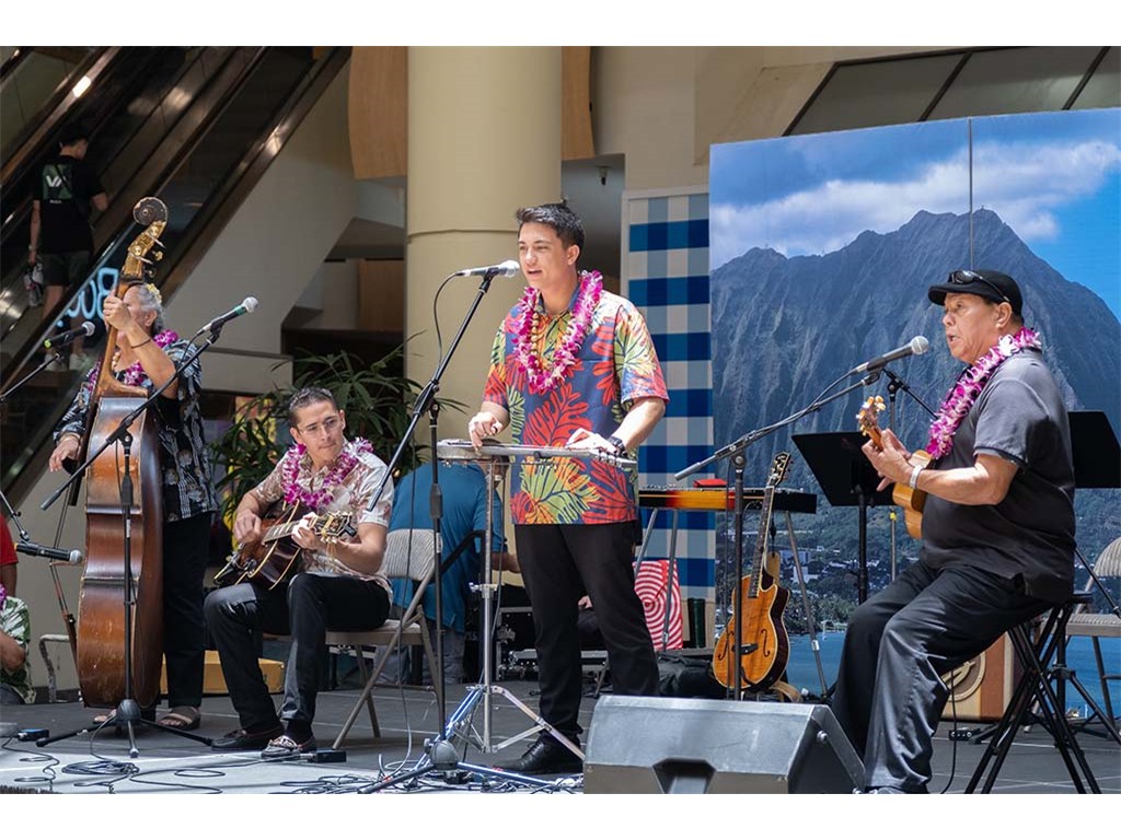 The Hawaiian Steel Guitar Festival at Windward Mall was held on Saturday, June 11, 2022, at the Windward Mall in Kane‘ohe. The festival featured steel guitarists Greg Sardinha and Po‘okela (Zachary Castro and Darrell Aquino), Kapono Lopes, Jeff Au Hoy, Steve Cheney, Joseph Zayac, Bobby Ingano, and Alan Akaka who also included NextGen steel guitarists Makamae Lyu-Napoleon, Isabella Bertelmann, Tai Misailidis, Pono Fernandez, and Joey Misailidis with Bobby Ingano assisting. Backup for some steel guitarists was provided by Helene Woodward on upright bass, Joseph Zayac on guitar, and Kaipo Asing on ‘ukulele.