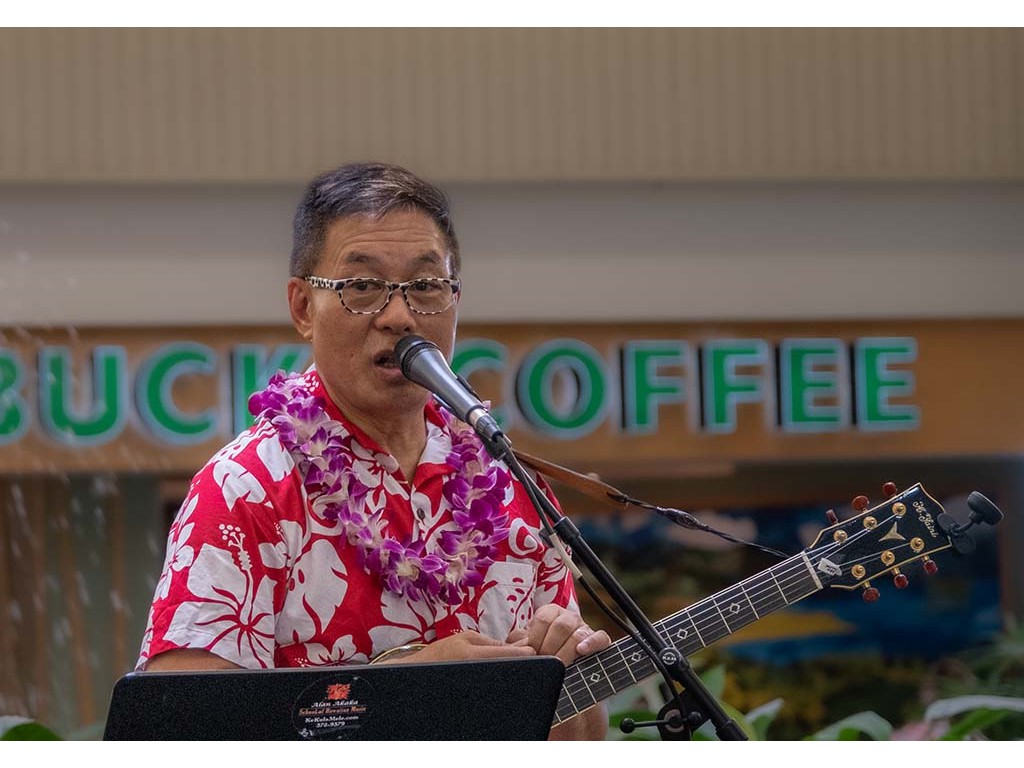Emcee Alan Akaka also provided backup guitar for the keiki steel guitarists.
