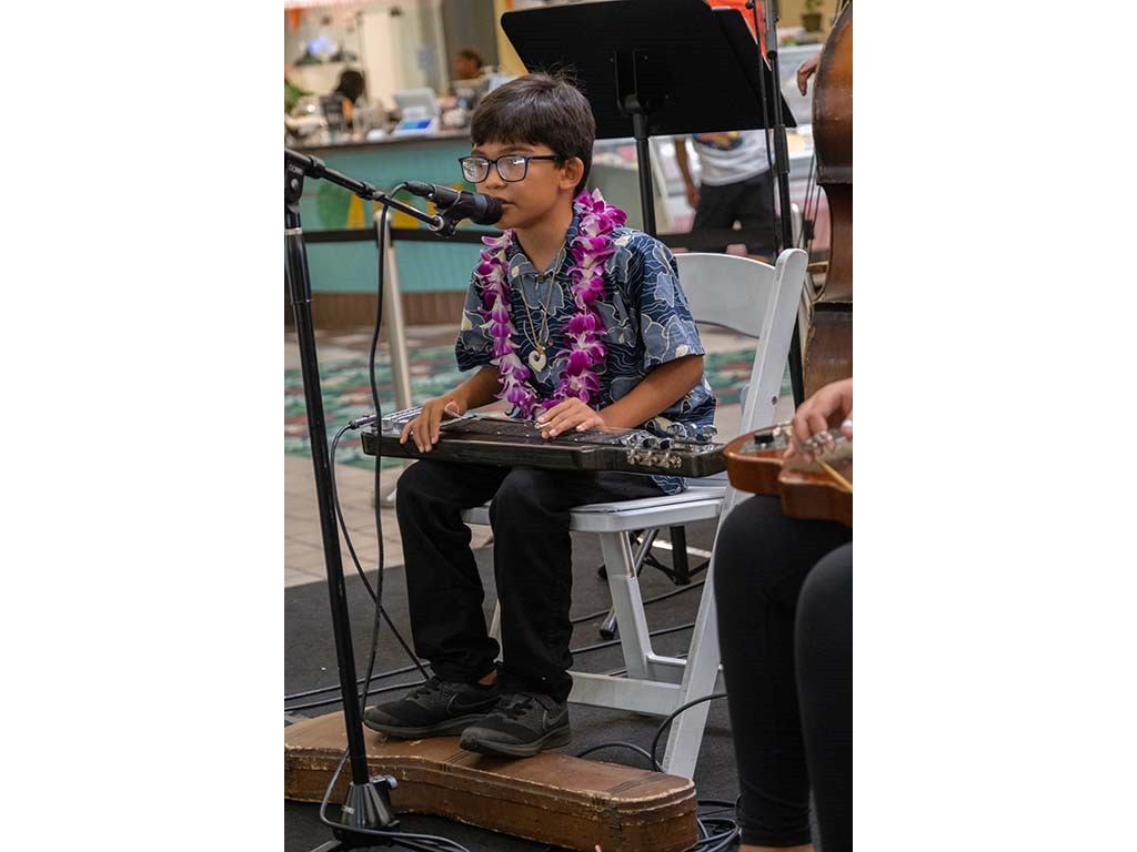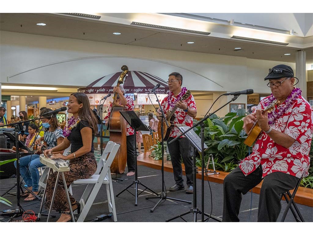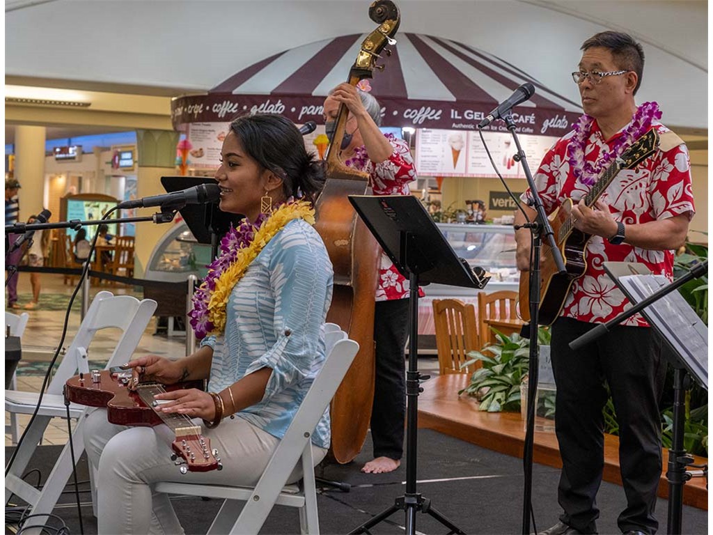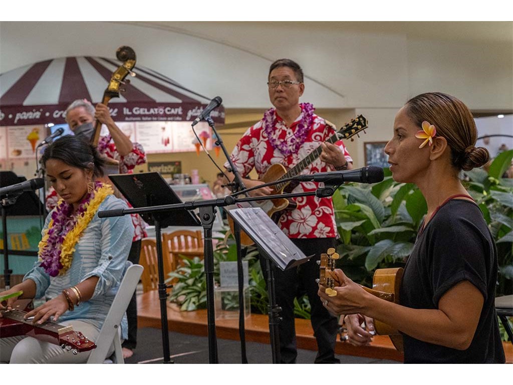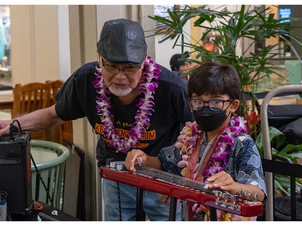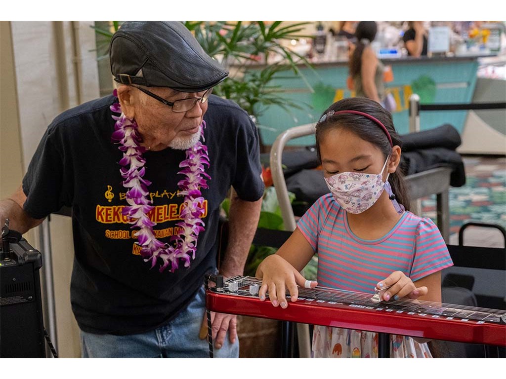 The 2022 Hawaiian Steel Guitar Festival - Keiki Kine at Kāhala Mall featured NextGen steel guitar players from Alan Akaka's Ke Kula Mele Hawai‘i School of Hawaiian Music in a two-hour performance. NextGen steel guitarists Reign Lyu, Enosa Lyman, Makamae Lyu-Napoleon, Isabella Bertelmann, Tai Misailidis, Joey Misailidis, and Malie Lyman were joined by Alan Akaka, Helene Woodward and Kaipo Asing.