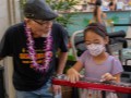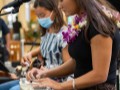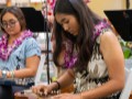 Claude Kutaka with another keiki festival guest at the hands-on demonstration table.