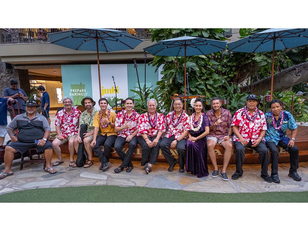 • Some festival participants and staff from left: Larry Holu, Nate Goore, Al Greene, Jr., Ethan Goore, Joseph Zayac, Helene Woodward, Alan Akaka, Kapuanani Greene, Nic Neufeld, Kaipo Asing, and Bobby Ingano.