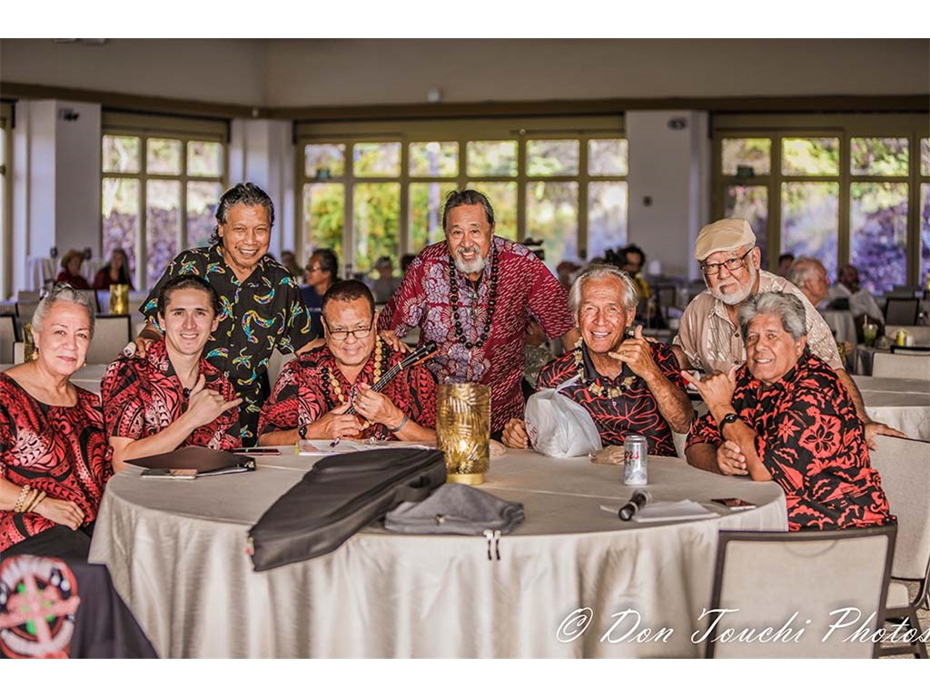 Helene Woodward, Joseph Zayac, Bobby Ingano, Kaipo Asing, Geri Valdriz, Kimo Kahoano, Dwight Tokumoto, and Greg Sardinha.