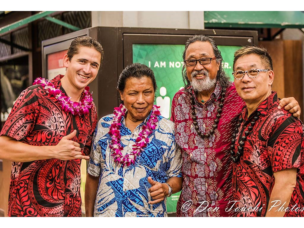 Joey Misailidis with Kaipo Asing, Joseph Zayac, Bobby Ingano, Alan Akaka, and Helene Woodward.