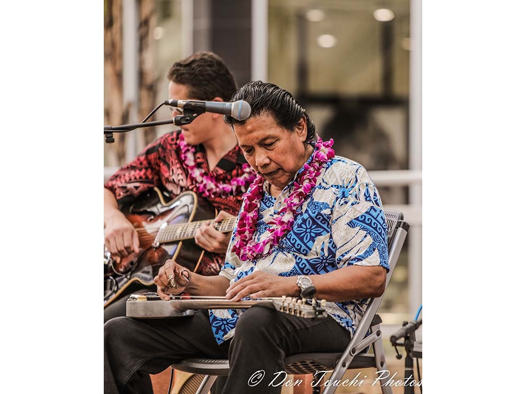 The 2022 Maui Steel Guitar Festival was held in two locations: The Shops at Wailea in Wailea on Saturday, October 15, and the Queen Ka‘ahumanu Center in Kahului on Sunday, October 16. Both festivals featured identical programs with O‘ahu steel guitarists Alan Akaka, Bobby Ingano, Greg Sardinha, Joseph Zayac, and Maui steel guitarists Geronimo "Geri" Valdriz, Konapiliahi Lau, and Joel Katz. NextGen keiki steel guitarists Mālie Lyman, Joey Misailidis and Tai Misailidis also performed. Backup musicians Kaipo Asing, Joseph Zayac and Helene Woodward assisted, and several hula dancers, including Kapuanani, Kathy Collins, Verdine Kong, and Maile Keawe Bryan, offered their hula to festival guests.