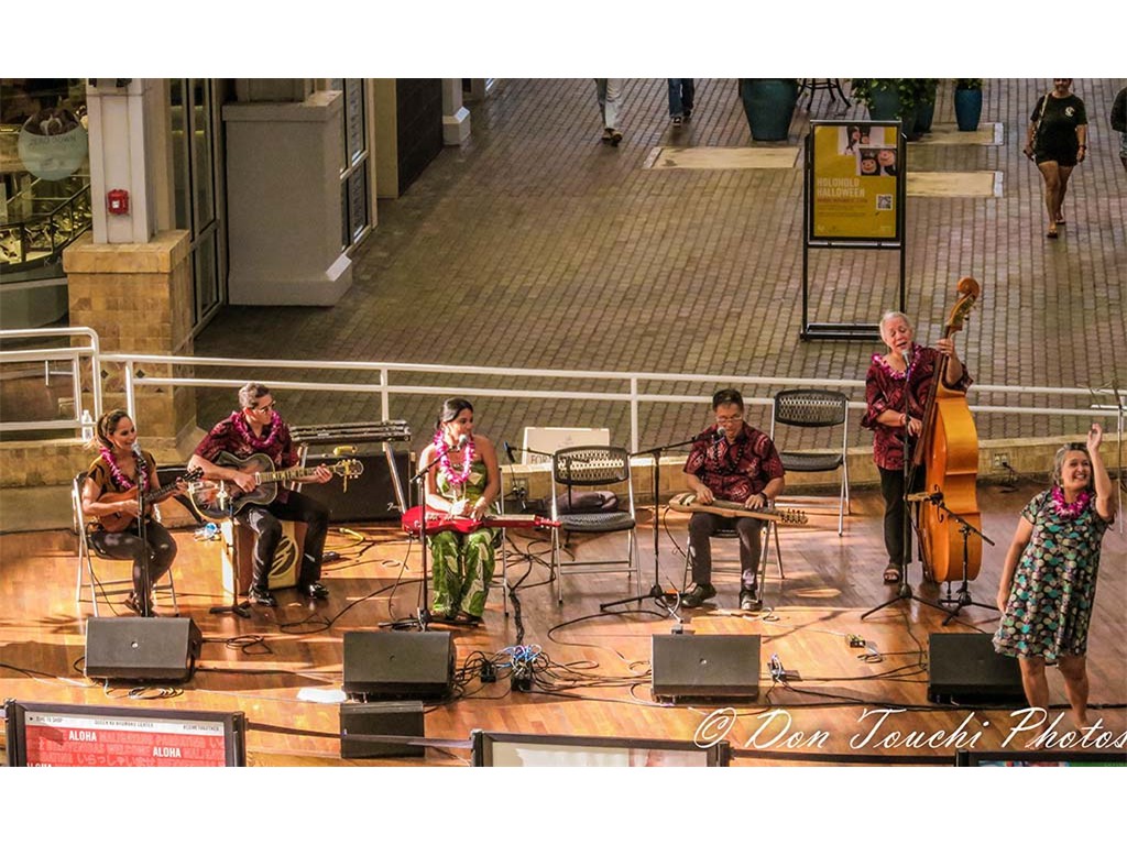 Featured steel guitarist Joel Katz with Preston Ako, Kalena Foster, and Koakane Mattos.