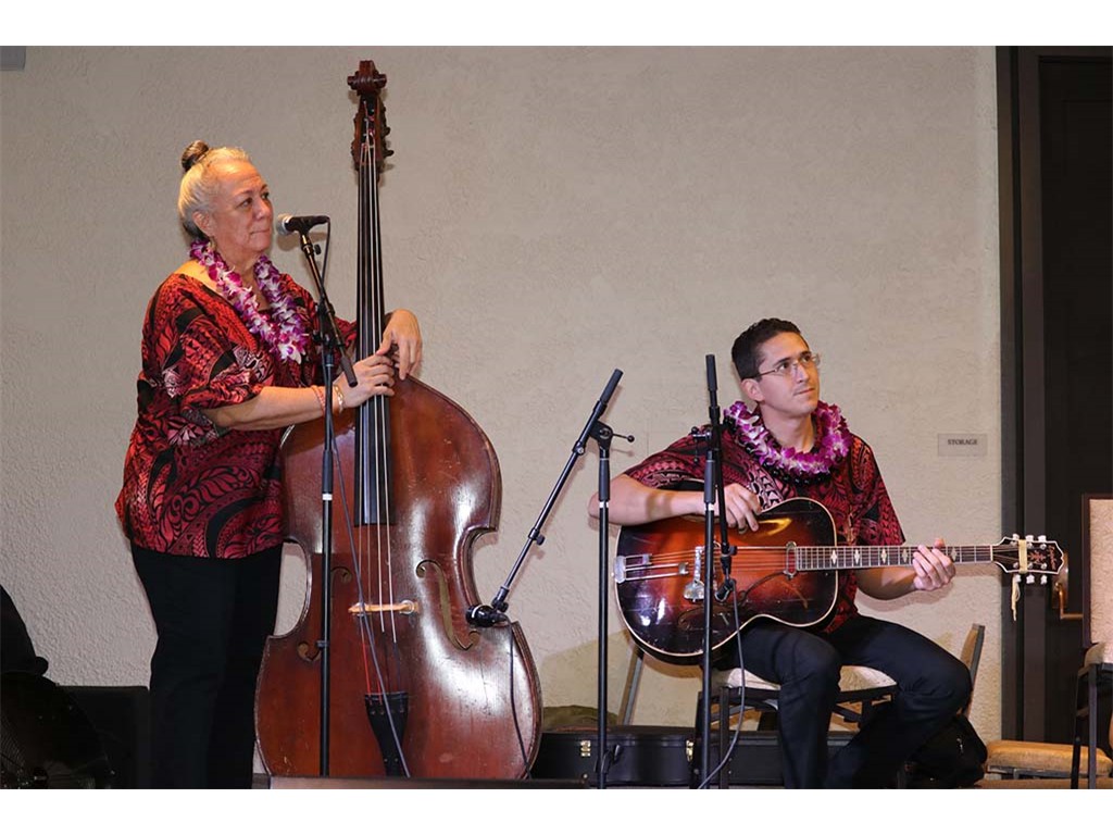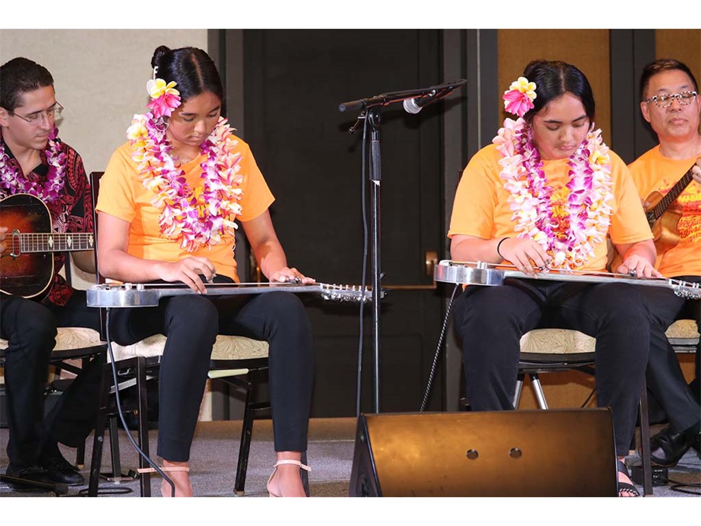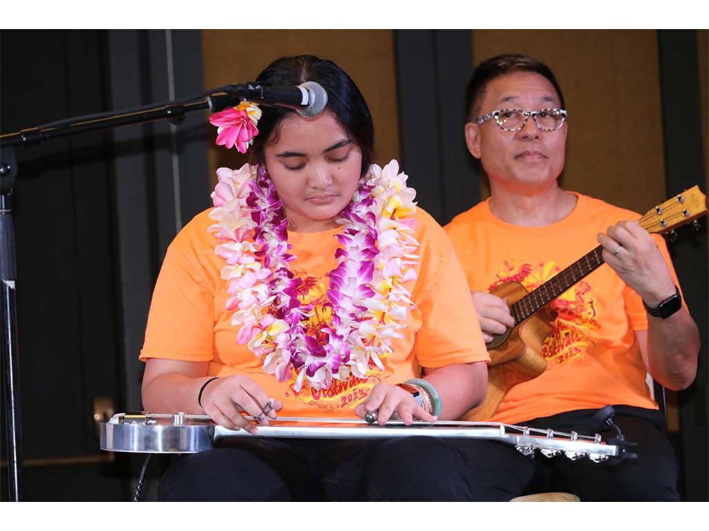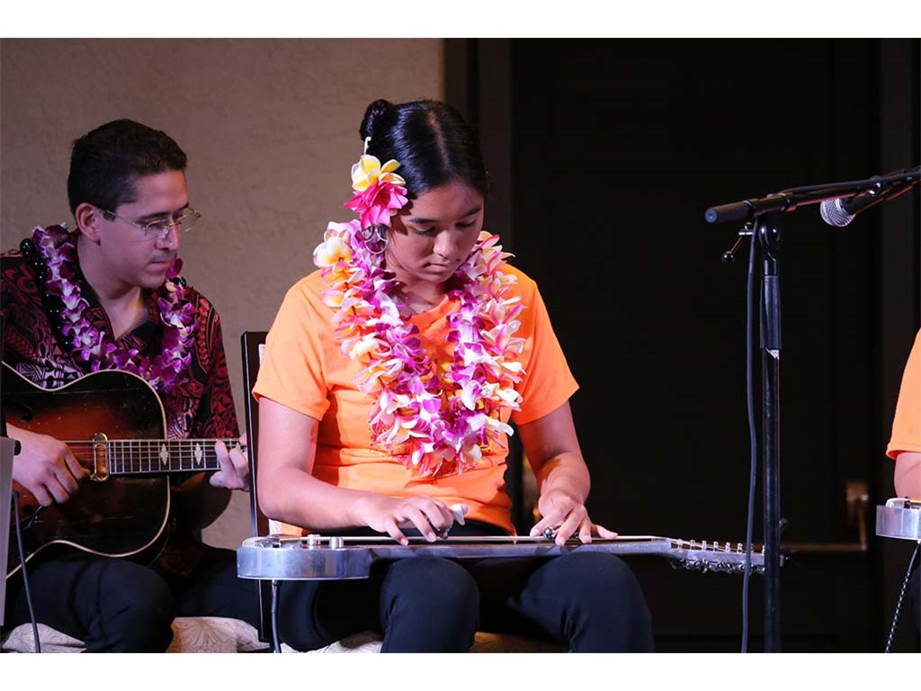 • NextGen steel guitarist Makamae Lyu-Napoleon with Alan Akaka.