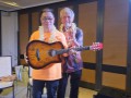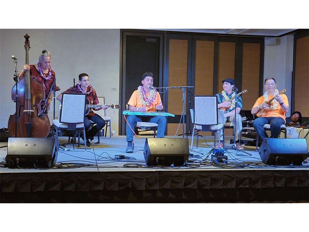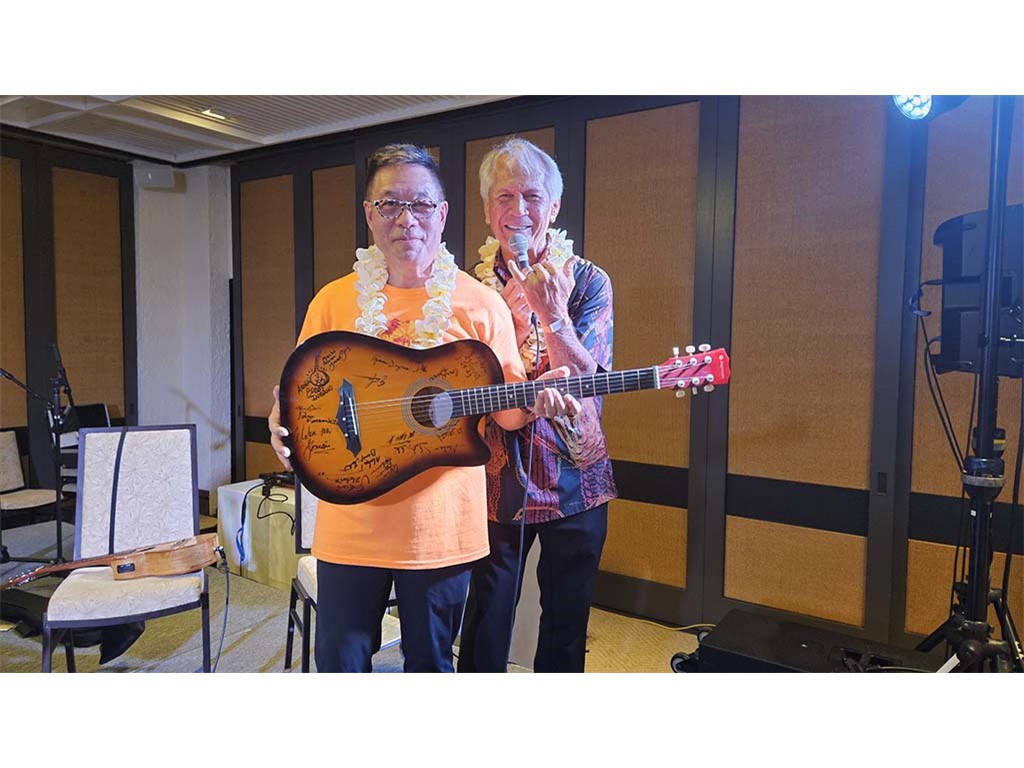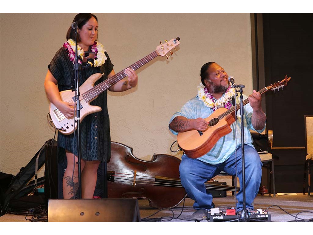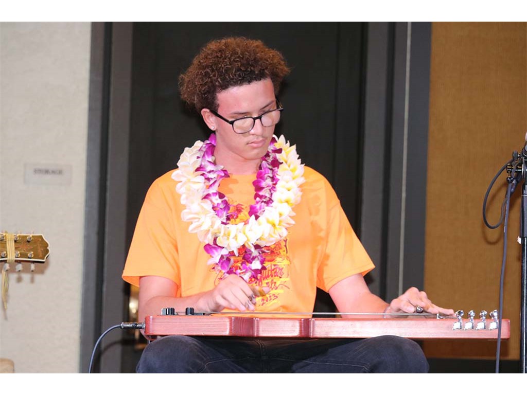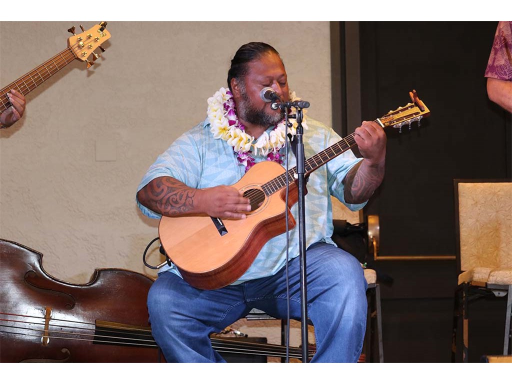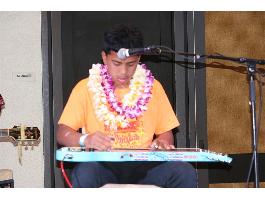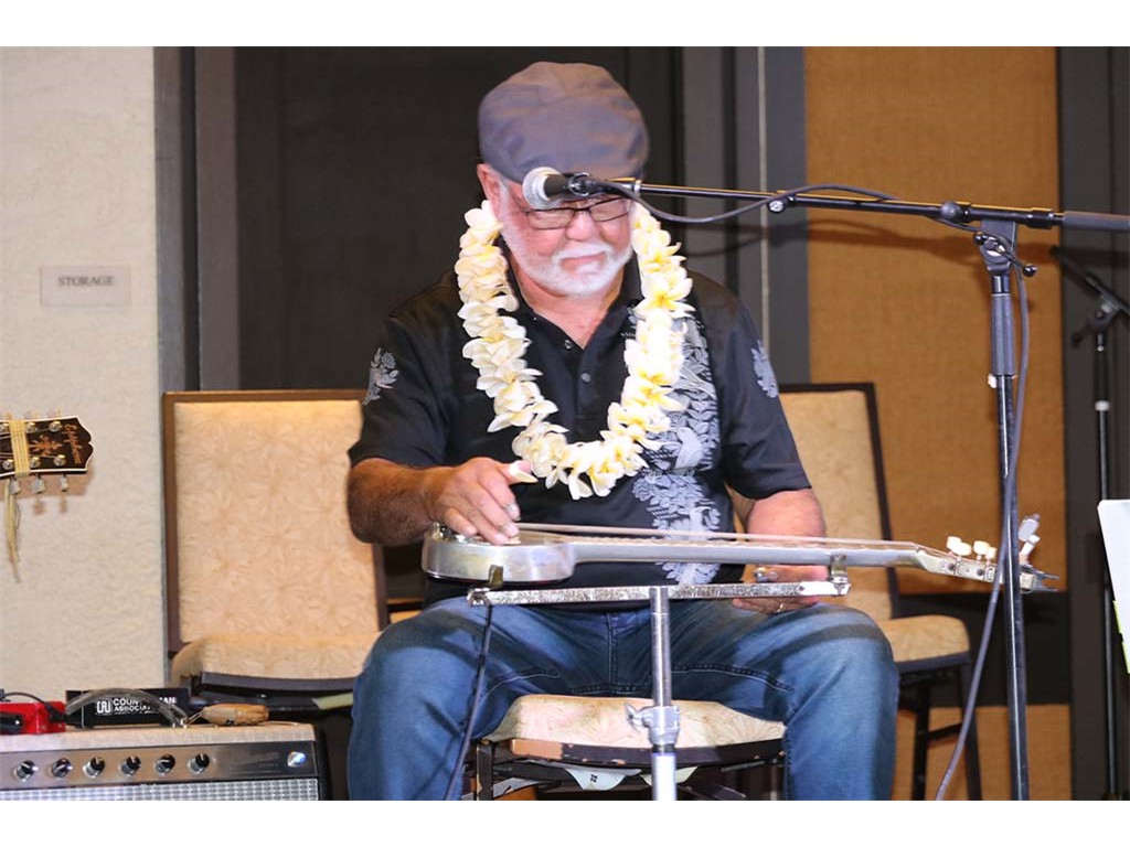 Daniel Tremblay conducted the hands-on experience and displayed an inexpensive guitar that he converted to function as a steel guitar. This guitar and the process he uses were presented at the Friday workshop, and Kapono Lopes was so impressed with the guitar that he asked to play it during his performance. The guitar, autographed by all participating musicians, was auctioned off with proceeds going to HIMELE to support its activities.