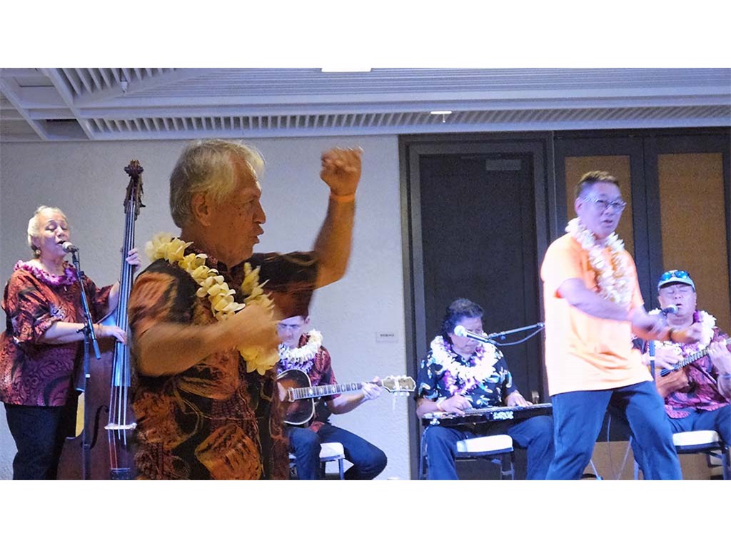 Alan shares a closing hula, 'ʻUlupalakua' with Joseph, Bobby, and Kaipo.