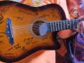 Alan makes a final pitch for the converted guitar auction that was signed by all festival musicians.