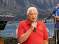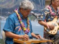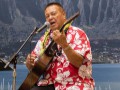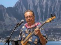 Greg with his group Poʻokela - Darrell Aquino on guitar and Kata Maduli on bass.