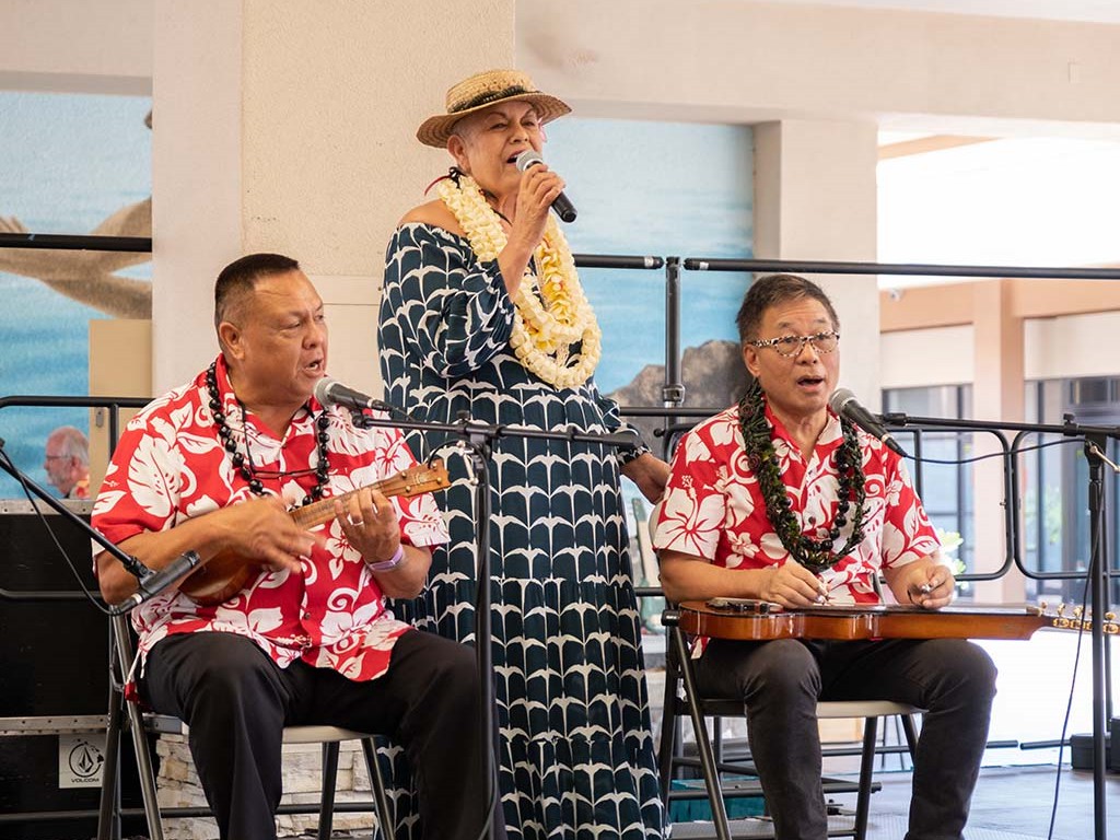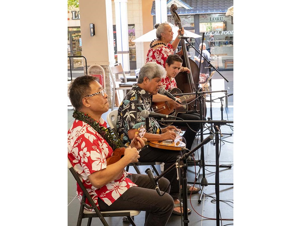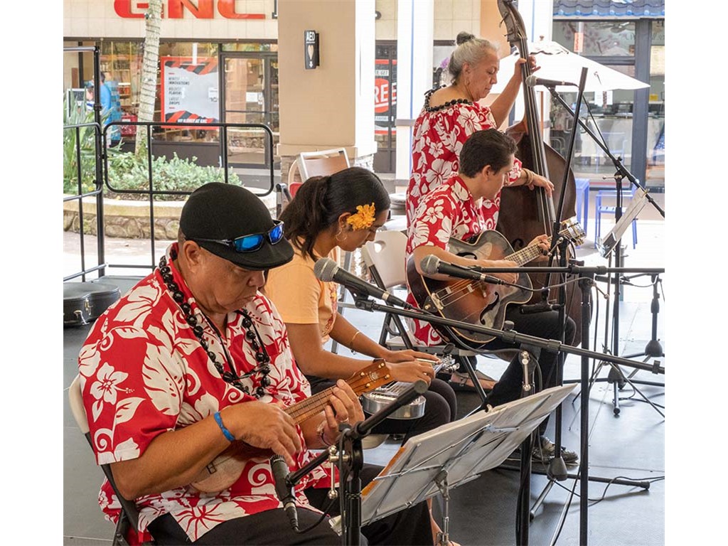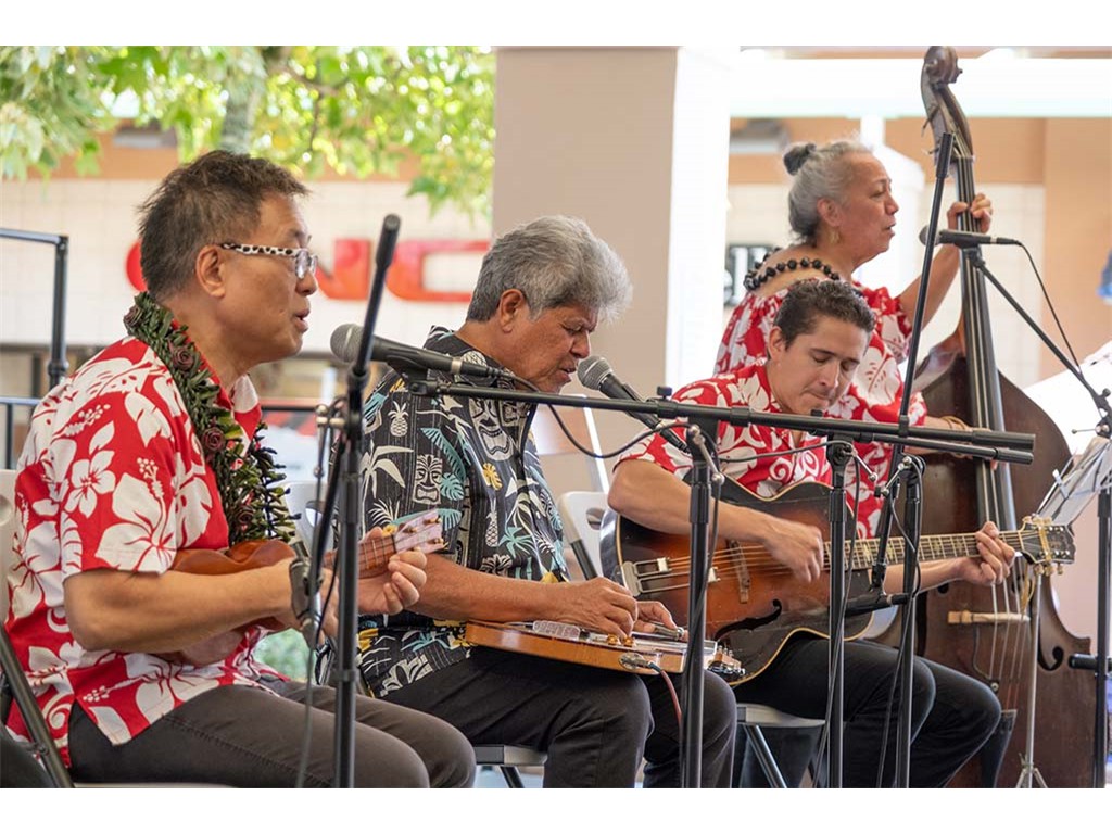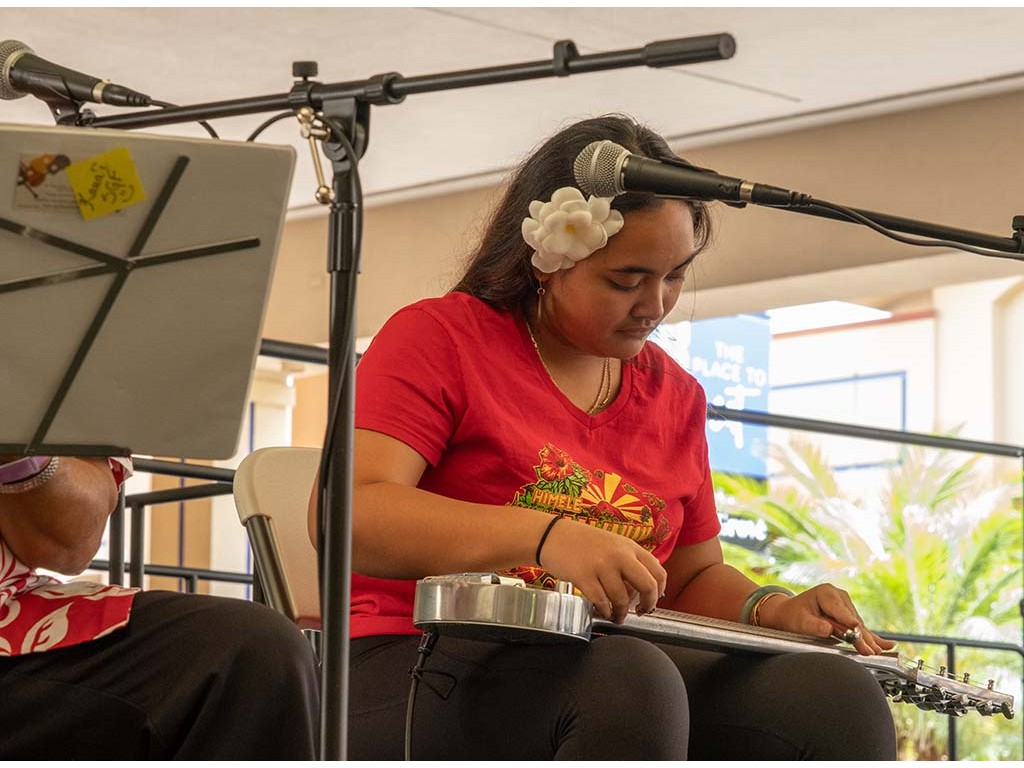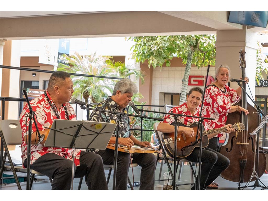 The Kukui Grove Center festival featured steel guitarists Geronimo "Geri" Valdriz, Greg Sardinha, NextGen steel guitarists Makamae Lyu-Napoleon, Isabella Bertlemann, Enosa Lyman, Tai Misailidis and Joey Misailidis, steel guitarists Sebastian Mūller, Mālie Lyman, Bobby Ingano with guest artist Heu‘i Bandmann, and Alan Akaka.