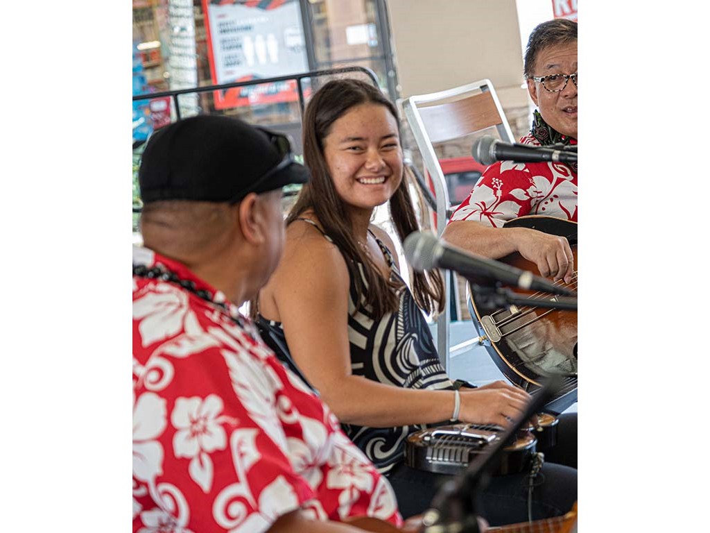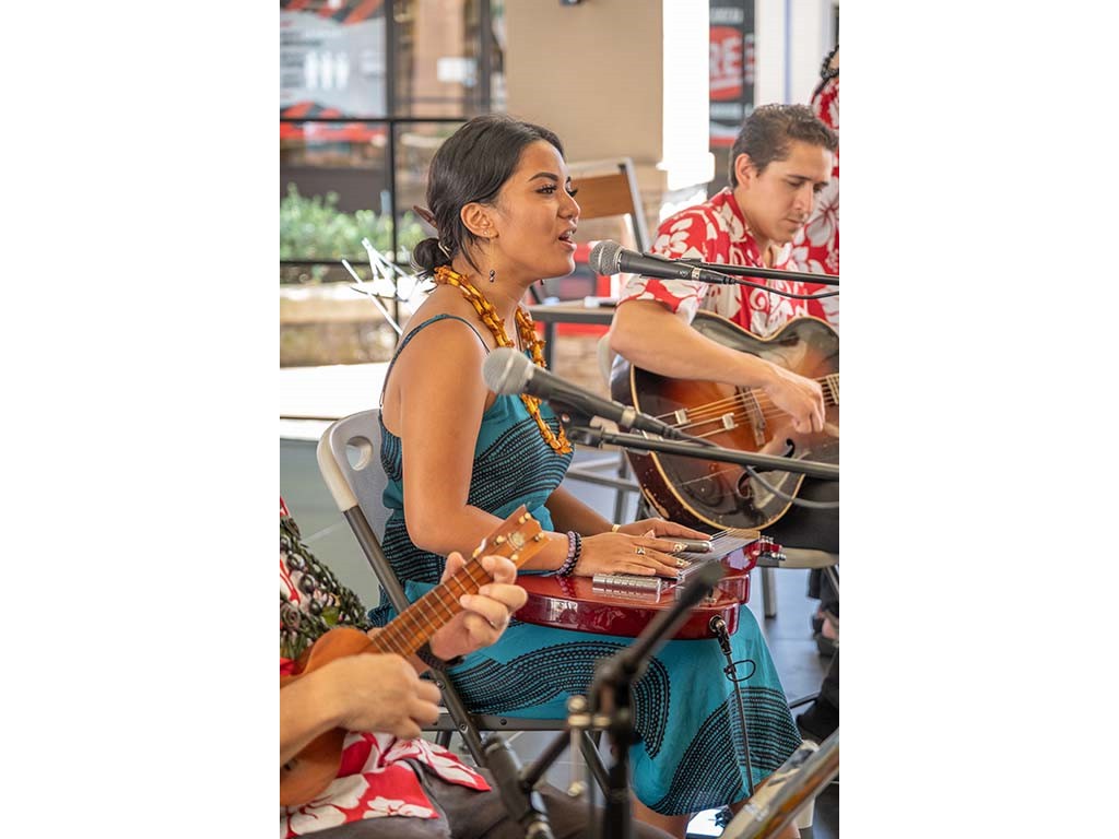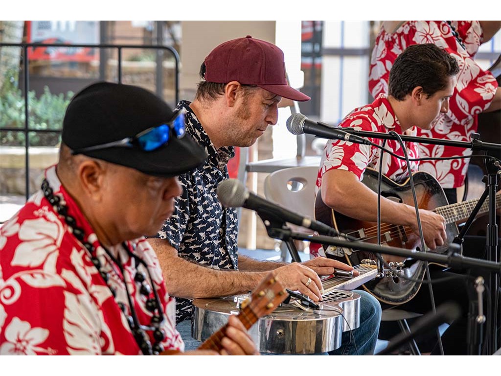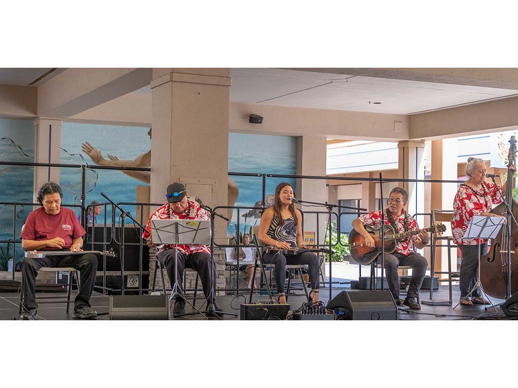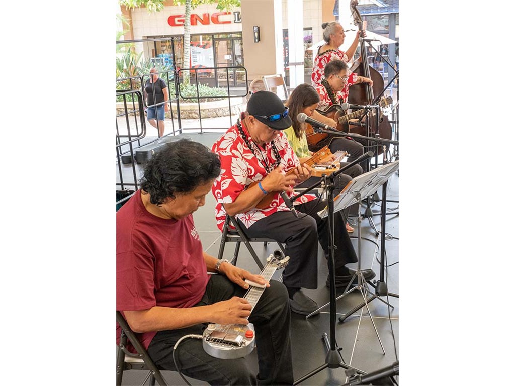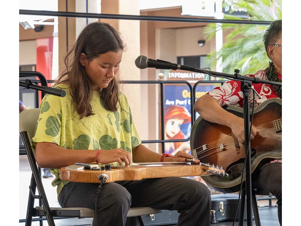 The Kukui Grove Center festival featured steel guitarists Geronimo "Geri" Valdriz, Greg Sardinha, NextGen steel guitarists Makamae Lyu-Napoleon, Isabella Bertlemann, Enosa Lyman, Tai Misailidis and Joey Misailidis, steel guitarists Sebastian Mūller, Mālie Lyman, Bobby Ingano with guest artist Heu‘i Bandmann, and Alan Akaka.