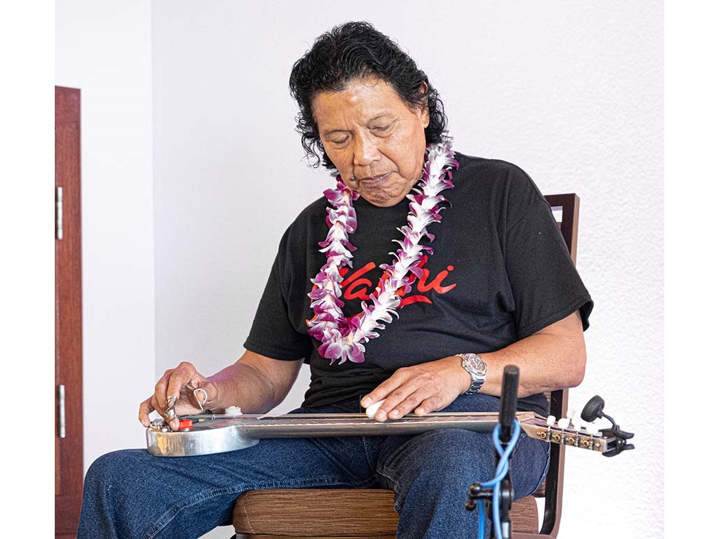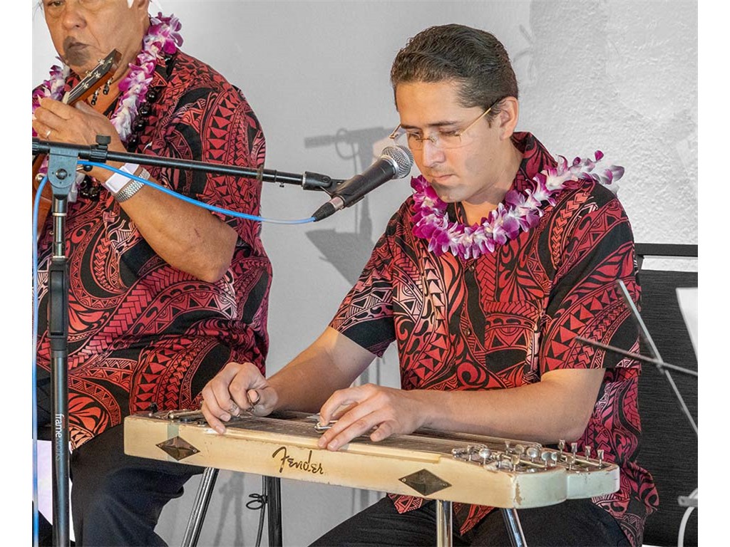 • Bobby Ingano supporting the keiki on his steel guitar.