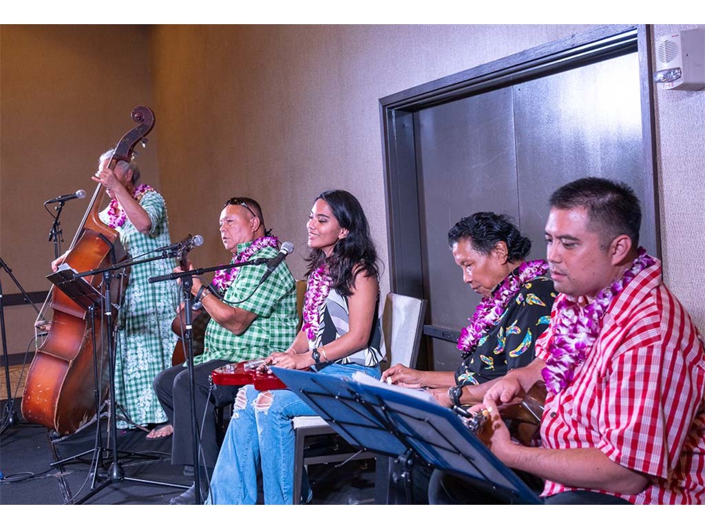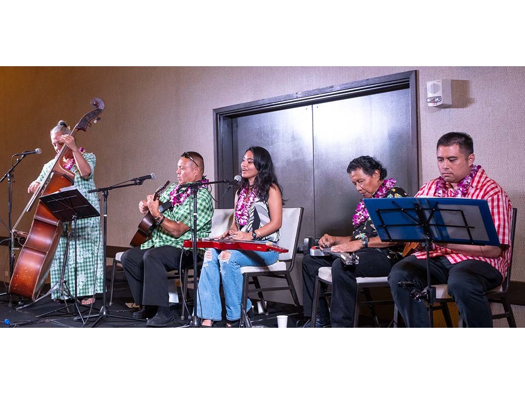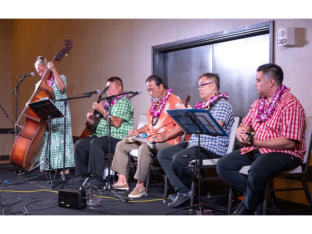 Featured steel guitarist Mālie Lyman with Helene, Kaipo Asing, Bobby, and Kaipo Lindsey.