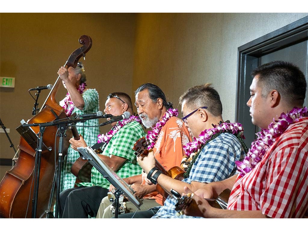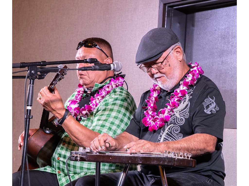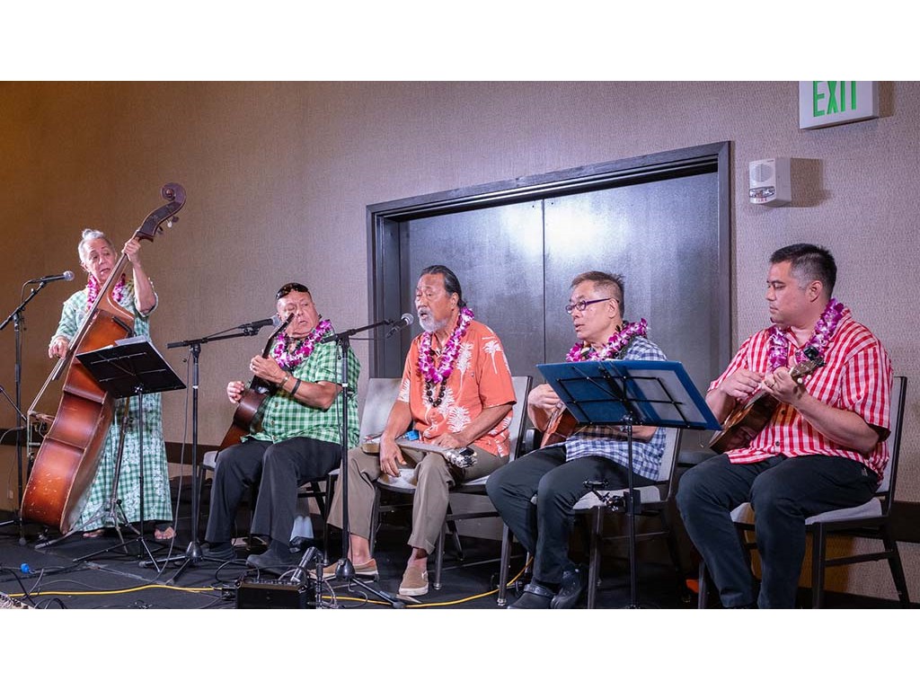 Featured steel guitarist Geronimo ''Geri'' Valdriz with Helene Woodward, Kaipo Asing, Alan Akaka, and Kaipo Lindsey.