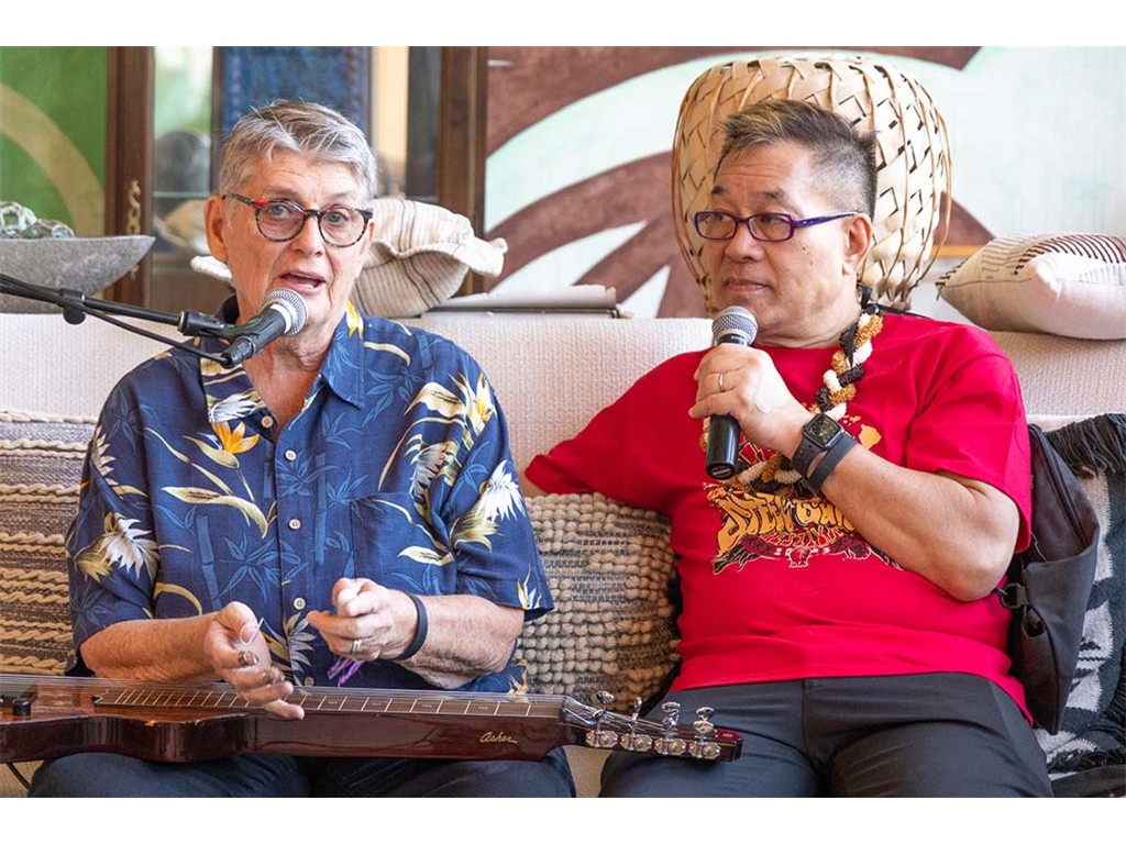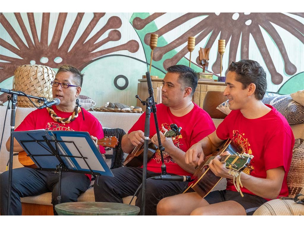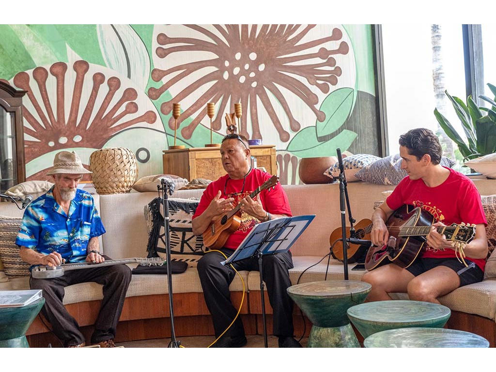 Originally planned for the resort's outdoor Surf Shack, open stage performances were moved indoors to the Hale Iīiki cultural center. Open stage performers included Barbara Bones, Vickie Van Fechtmann, Jim Dowiat, Daniel Toft, and NextGen steel guitarists. Backup accompaniment was provided by Bobby Ingano, Alan Akaka, Kaipo Asing, Kaipo Lindsey, Joseph Zayac, Larry Holu, and Helene Woodward.