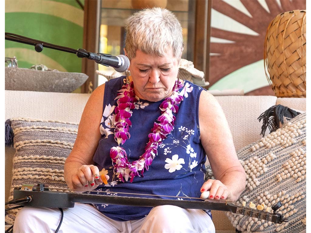 • Barbara shows off her new Asher Akaka LImited Edition Signature Steel Guitar.
