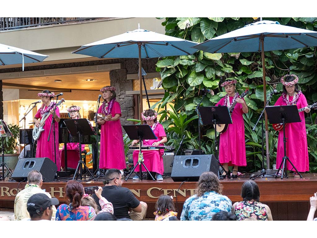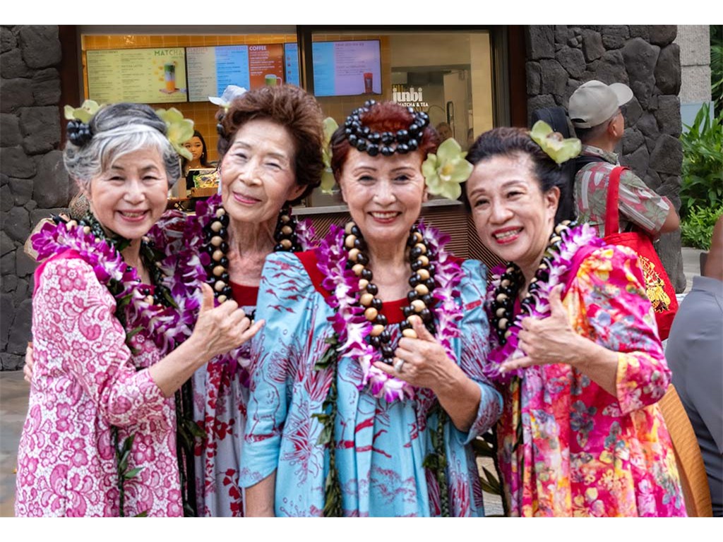 • Hula dancers Keiko Azumi, Tomoko Yoda, Kumu Kamaile Sachiko Tanaka, and Akemi Mutou of Ona Ona O Kamaile.