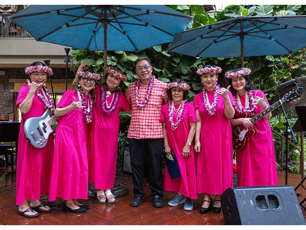 • Masami Sato & Makana with dancers from hula halau Ona Ona O Kamaile.