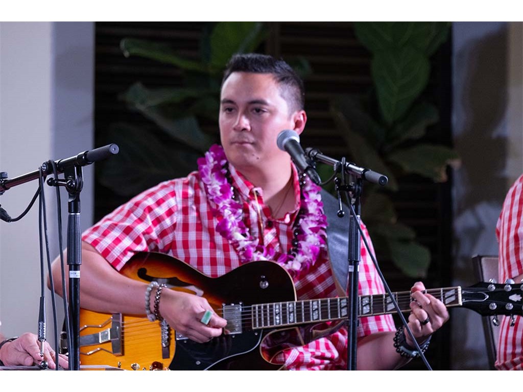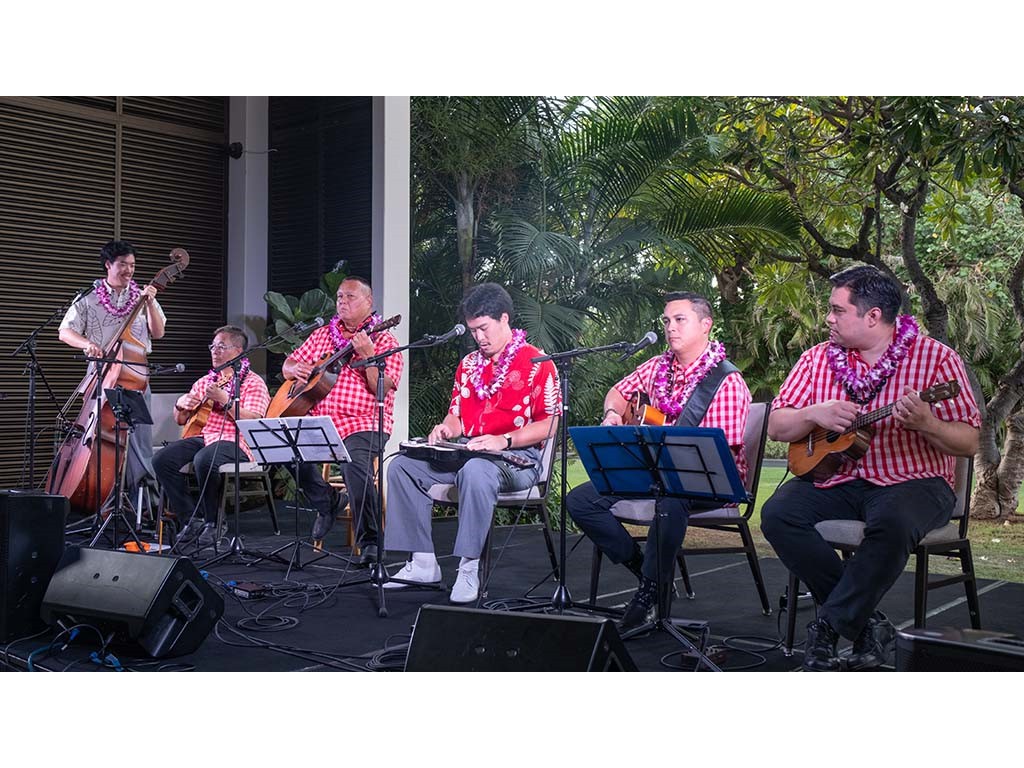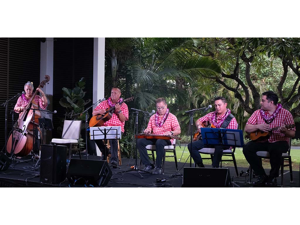 Featured steel guitarist Devin Nakahara with Dylan Nakahara, Alan Akaka, Kaipo Asing, David Woodward, and Kaipo Lindsey providing backup.