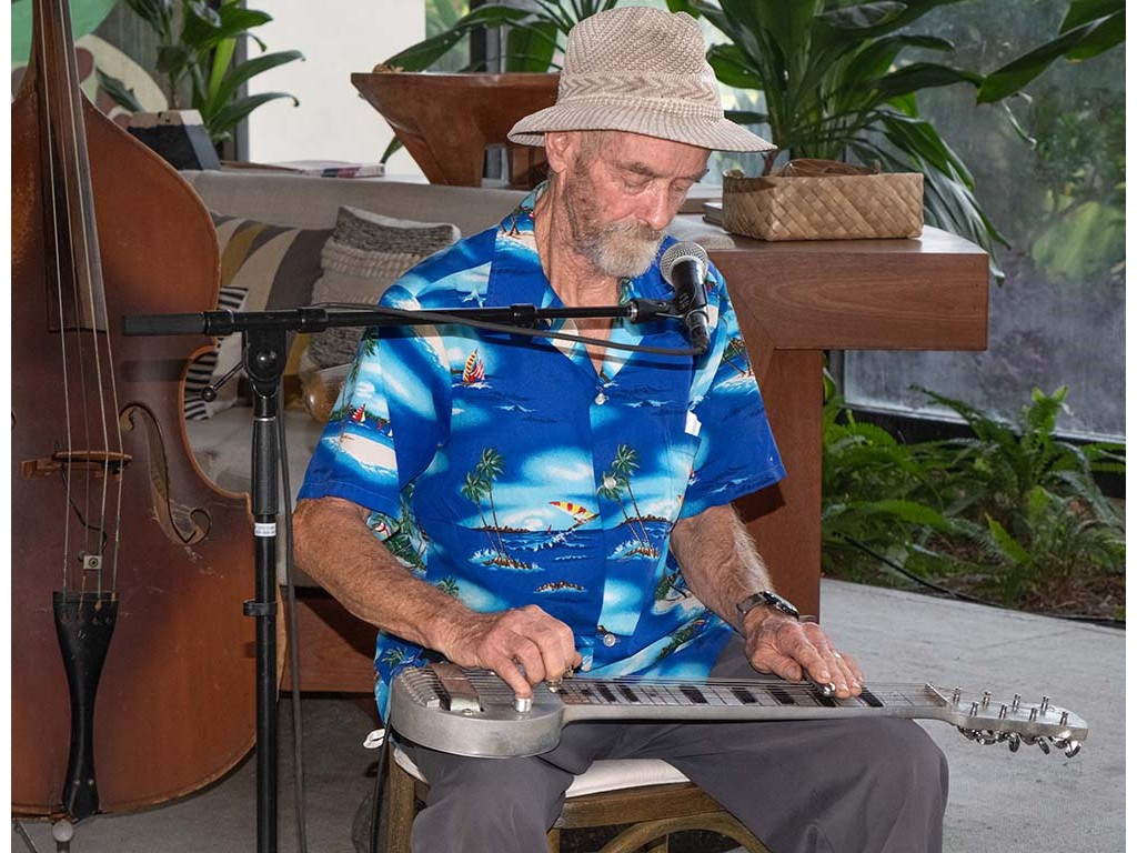 Open stage performances were held at the Hale Iīiki cultural center. Open stage performers included Barbara Bones, Vickie Van Fechtmann, Daniel Toft, NextGen steel guitarists, and surprise guest steel guitarist Ken Emerson. Backup accompaniment was provided by David Woodward, Ethan Speyer, Kaipo Lindsey, Tai Misailidis, and Alan Akaka.