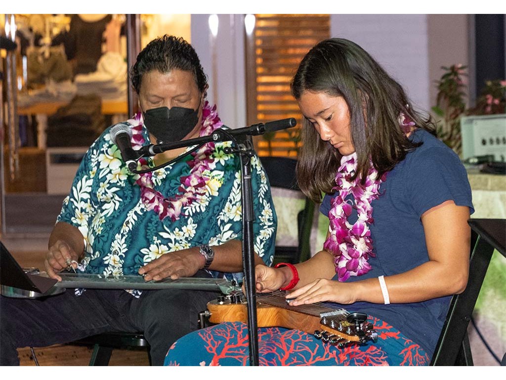 NextGen steel guitarist Enosa Lyman with Alan Akaka.