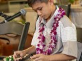 Hiʻipoi Lindsey with Tai Misailidis, David Woodward, Alan Akaka, Ethan Speyer, and Kaipo Lindsey and Jake Fernandez in the background.