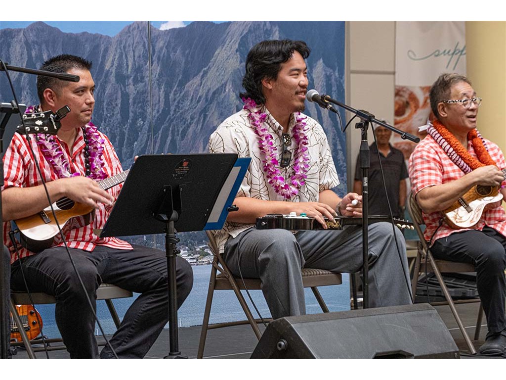 Featured steel guitarist Devin Nakahara with Kaipo Lindsey and Alan Akaka.