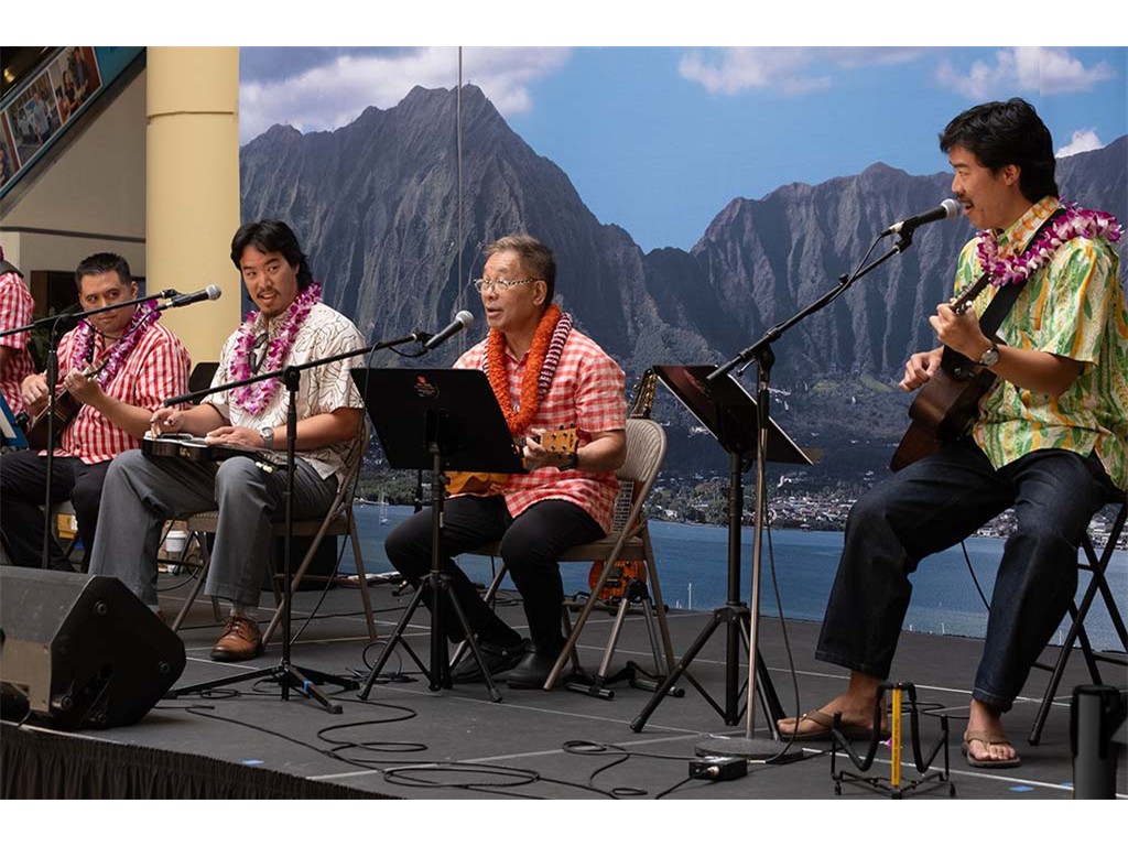 Musicians Calvin Higa, Claude Kutaka, Tom Okimoto, Augie Erlandiz, Miles Yoshioka, Clayton Izu, Mele Alaka’i Naomi Ahana, Steve Kawachi, Myra O’Brien, and Yvonne Bangay.
