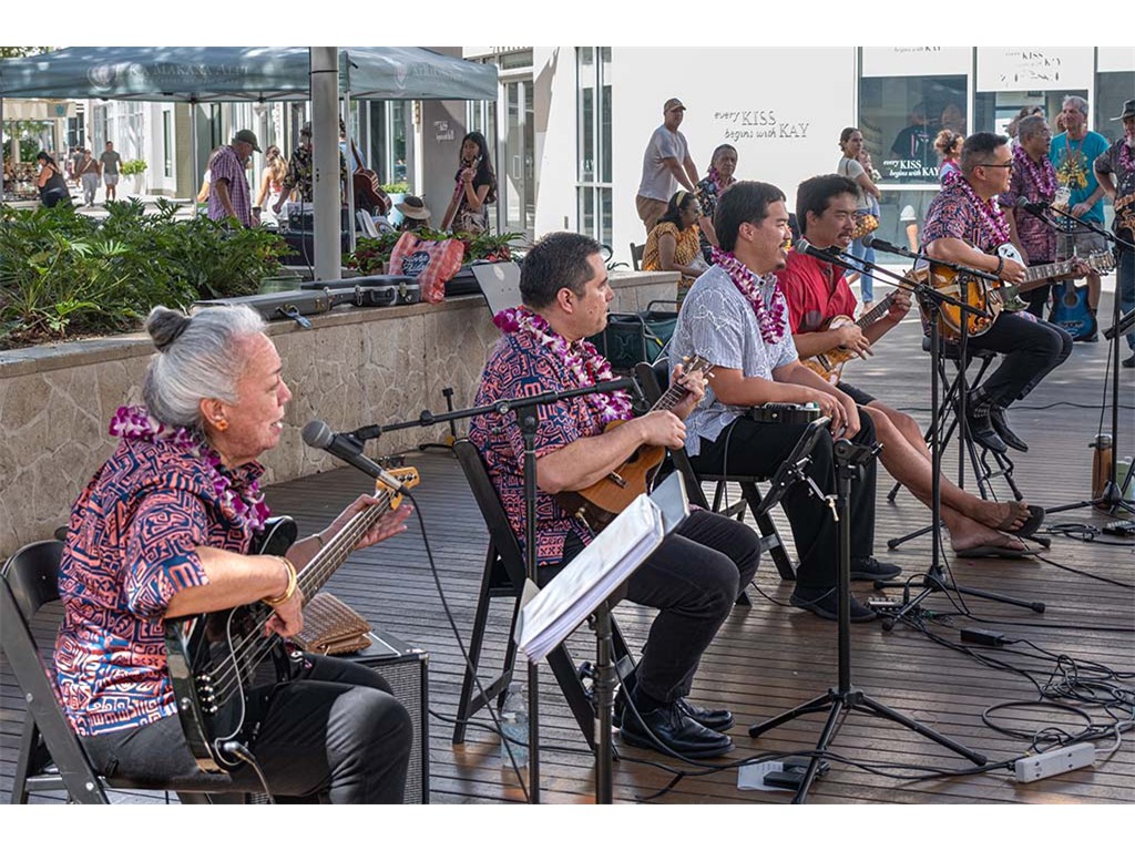 Featured Steel Guitarist Bobby Ingano with Helene Woodward, Kaipo Lindsey, Alan Akaka, and David Woodward.