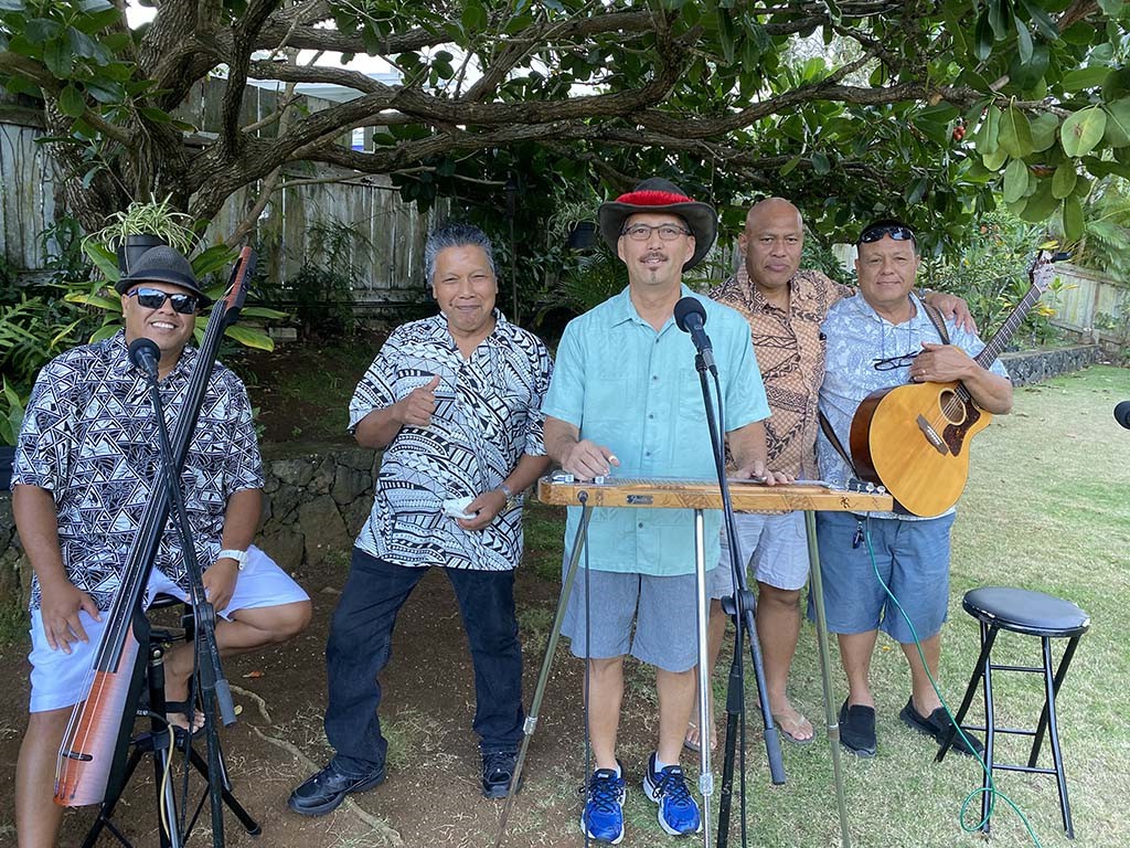 Adam Asing, Bobby Ingano, Paul Kim, Ocean Kaowili, and Kaipo Asing. Photo by Alan Akaka.