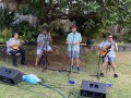 Steel guitarist Paul Kim is backed up by Bobby Ingano, Adam Asing, and Kaipo Asing. Photo by Alan Akaka.