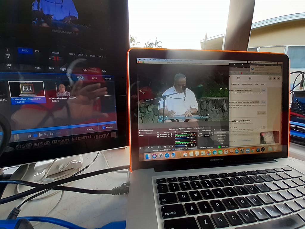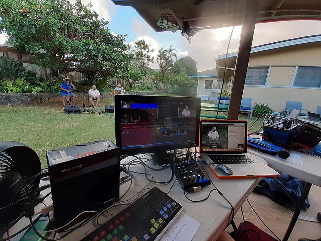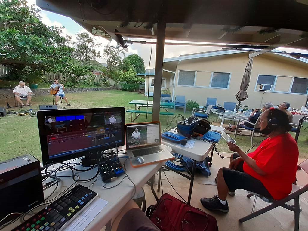 Monitoring the livestream broadcast video. Photo by Alan Akaka.