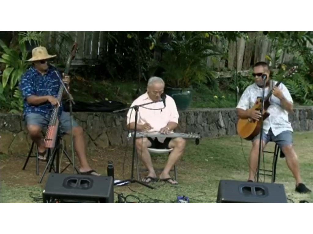 Live performance by Isaac Akuna, accompanied by Adam Asing on bass and vocals and Kaipo Asing on guitar and vocals.
