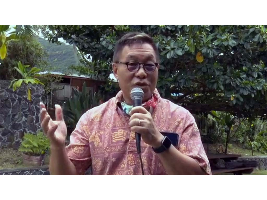 Alan Akaka welcoming the livestream audience.