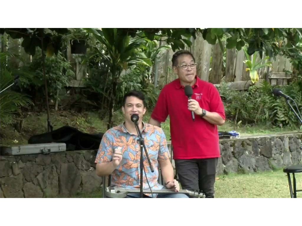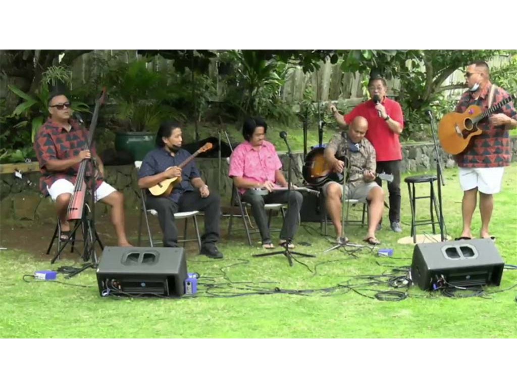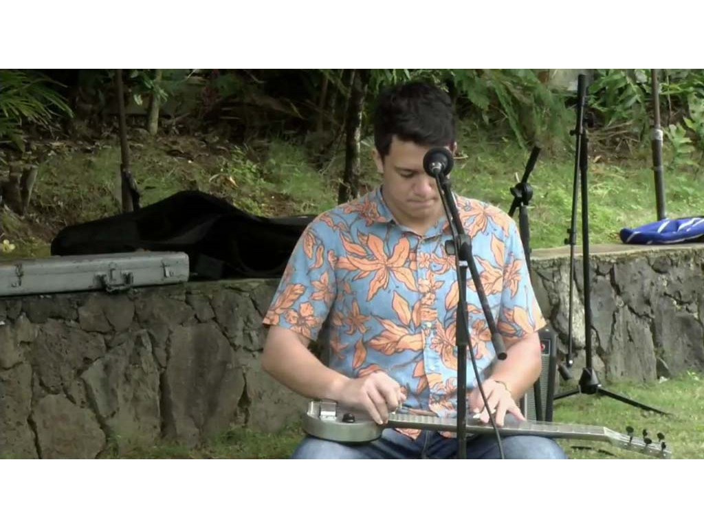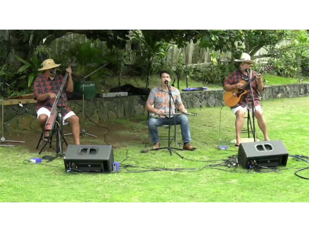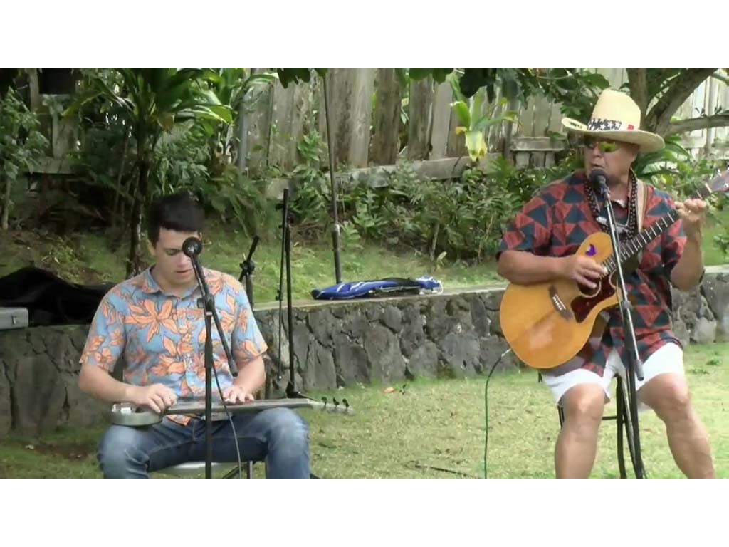 Alan Akaka introduces featured steel guitarist Jeff Au Hoy with special guests Bobby Ingano and Ocean Kaowili and Adam and Kaipo Asing.