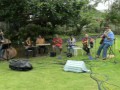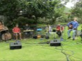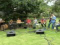 More instrument switching. From left: Kapono Lopes on bass, Bobby and Jeff on steel guitar, Greg on ʻukulele, Mālie, Alan, Kaipo, and Adam Asing on ʻukulele.
