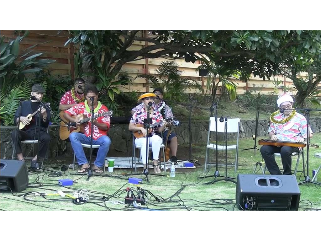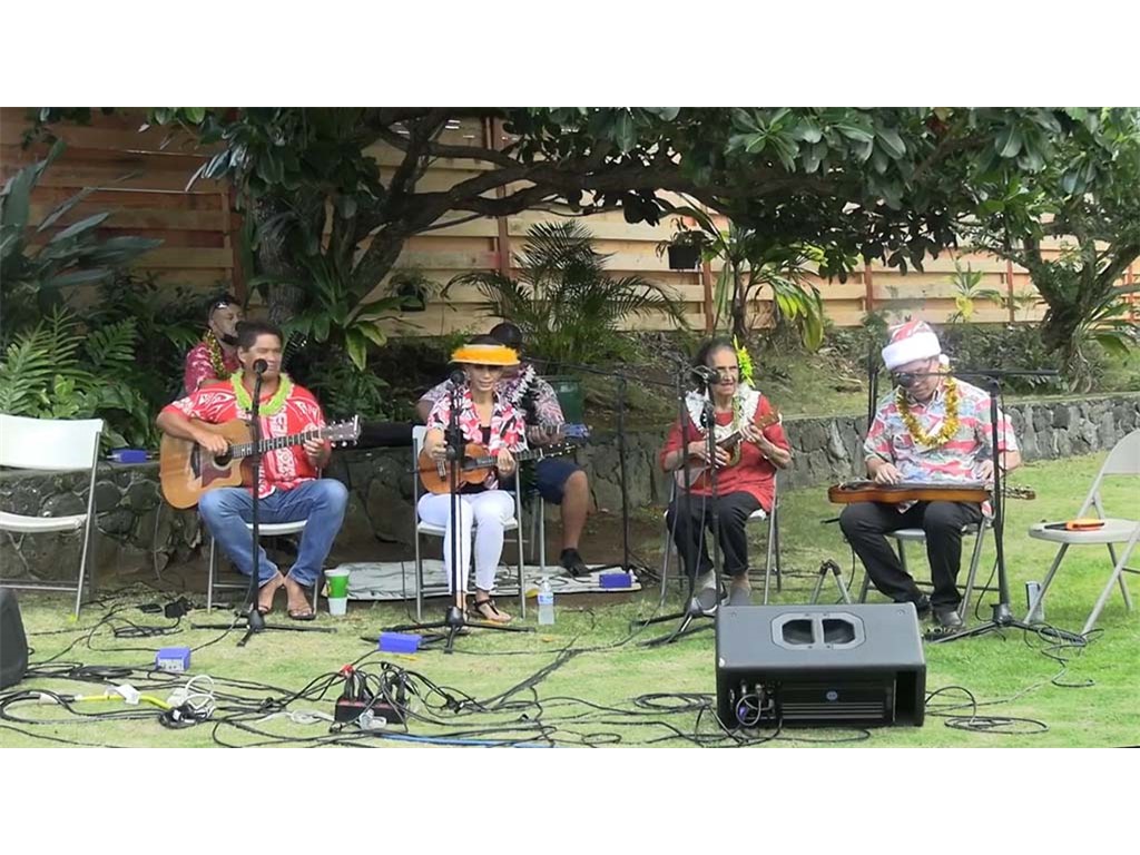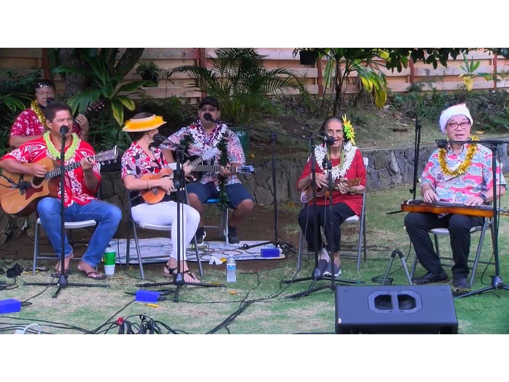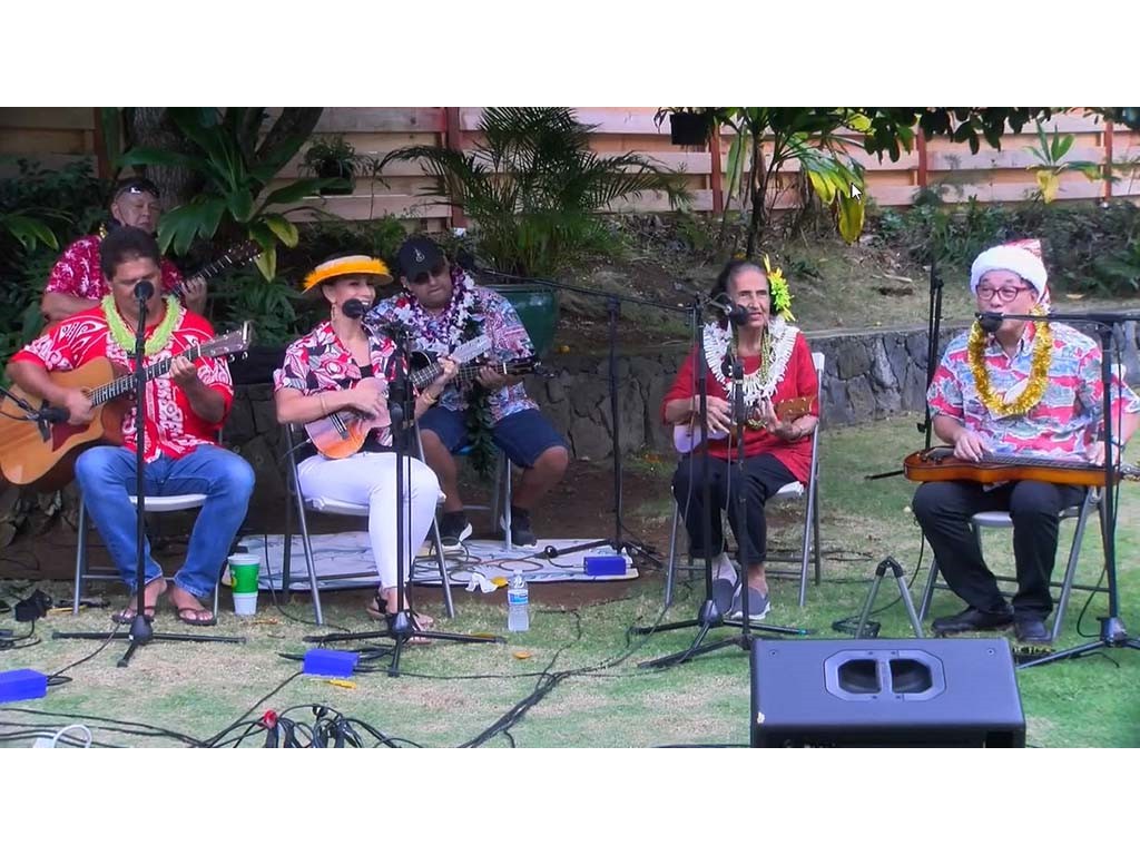 The Livestream Kanikapila on December 18, 2021 featured live performances by the Keawe ‘Ohana. Labeled as "A Keawe ‘Ohana Christmas," artists included Gary Aiko, Pomaika‘i Keawe, Momi Bee Kahawaiola‘a, Alan Akaka, and Eric Keawe. Also appearing were Kaipo Asing and Jeremy Kama Hopkins, grandson of Aunty Momi. Prerecorded Christmas videos featuring NextGen steel guitarists were also presented.